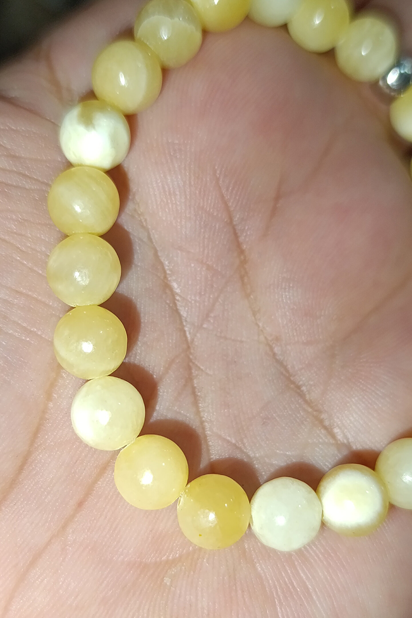 Doğal kalsit taşı kullanılarak üretilmiş, şıklığı ve doğallığı bir arada sunan bileklik; 8 mm boyutundaki zarif tasarımıyla dikkat çeken bu bileklik, günlük kullanım için idealdir; Sarı kalsit taşı sayesinde benzersiz bir görünüm kazanan bu aksesuar, her türlü kıyafetle uyum sağlar; Doğal taş materyali ile hem dayanıklılık hem de estetik bir dokunuş sunar;