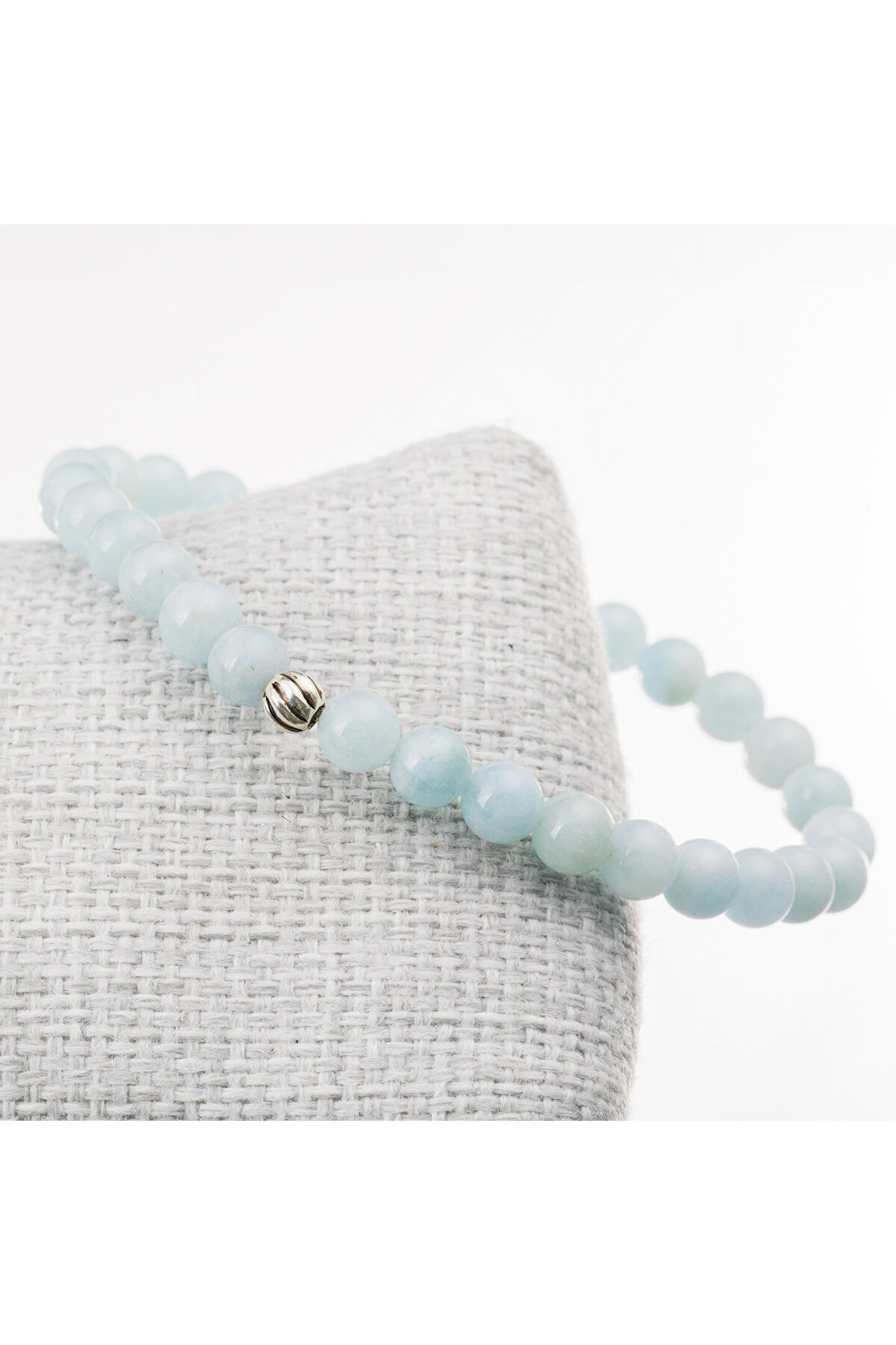 Doğal akuamarin taşı, gümüş bileklikte zarif bir şekilde kullanılarak, hem şıklığı hem de doğallığı bir arada sunar; Gümüş materyali sayesinde, bilekliğin parlaklığını ve dayanıklılığını artırırken, cildinizle uyumlu bir dokunuş sağlar; 6 mm boyutundaki akuamarin taşı, bileklikte rahat bir kullanım sunarken, zarif görünümüyle dikkat çeker; Akuamarin taşı, enerji verici ve sakinleştirici özellikleri ile bilinir; bu da onu günlük kullanım için ideal bir aksesuar haline getirir;