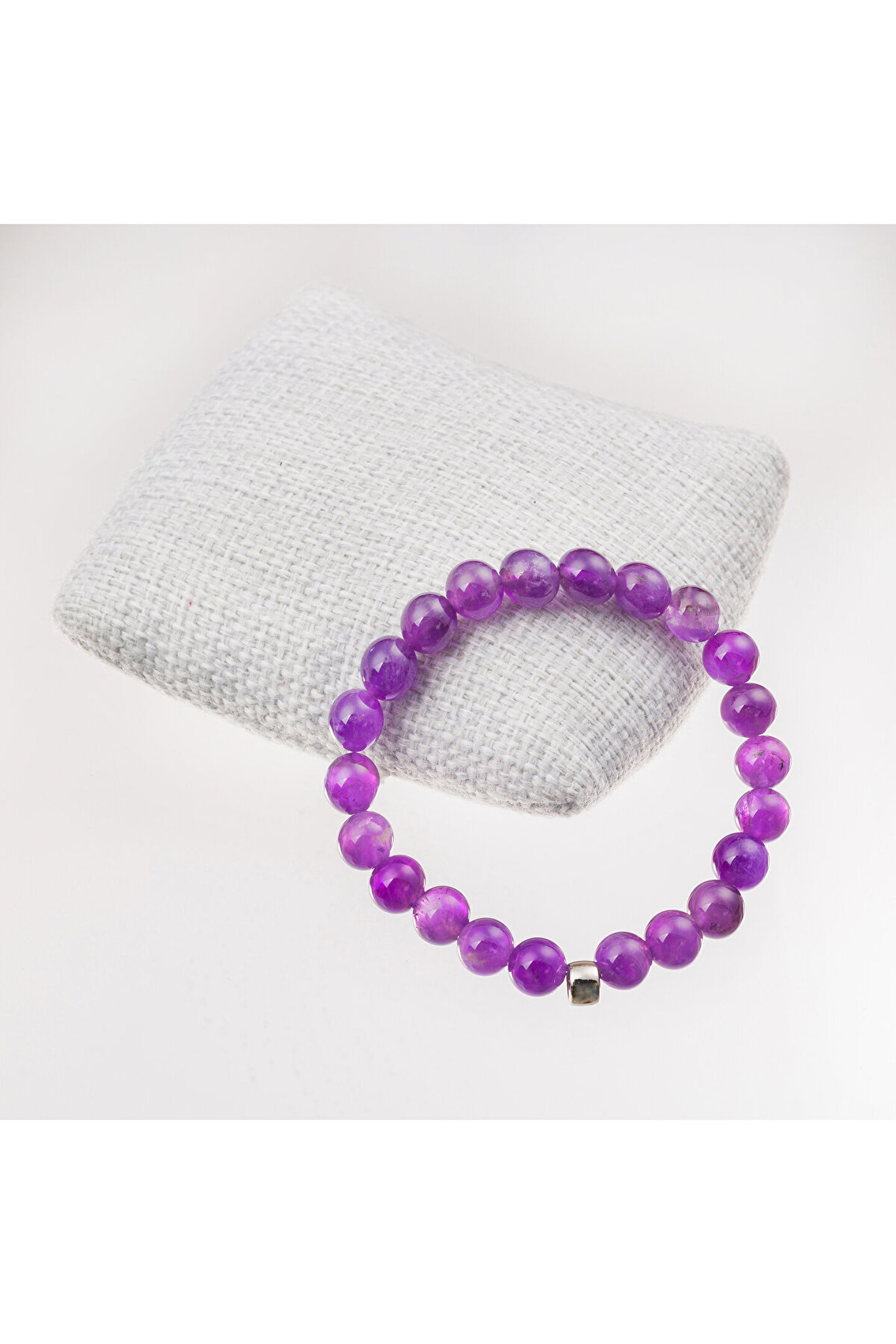 - Doğal Ametist taşı kullanılarak üretilmiş, şıklığı ve zarafeti bir arada sunan bileklik; - 8 mm boyutundaki bu bileklik, günlük kullanım için idealdir ve her türlü kıyafetle uyum sağlar; - Ametist taşı, sakinleştirici etkisiyle bilinir ve enerjiyi dengelemeye yardımcı olur; - Doğal taş materyali sayesinde her bileklik benzersizdir ve doğanın güzelliklerini bileğinizde taşımanızı sağlar;