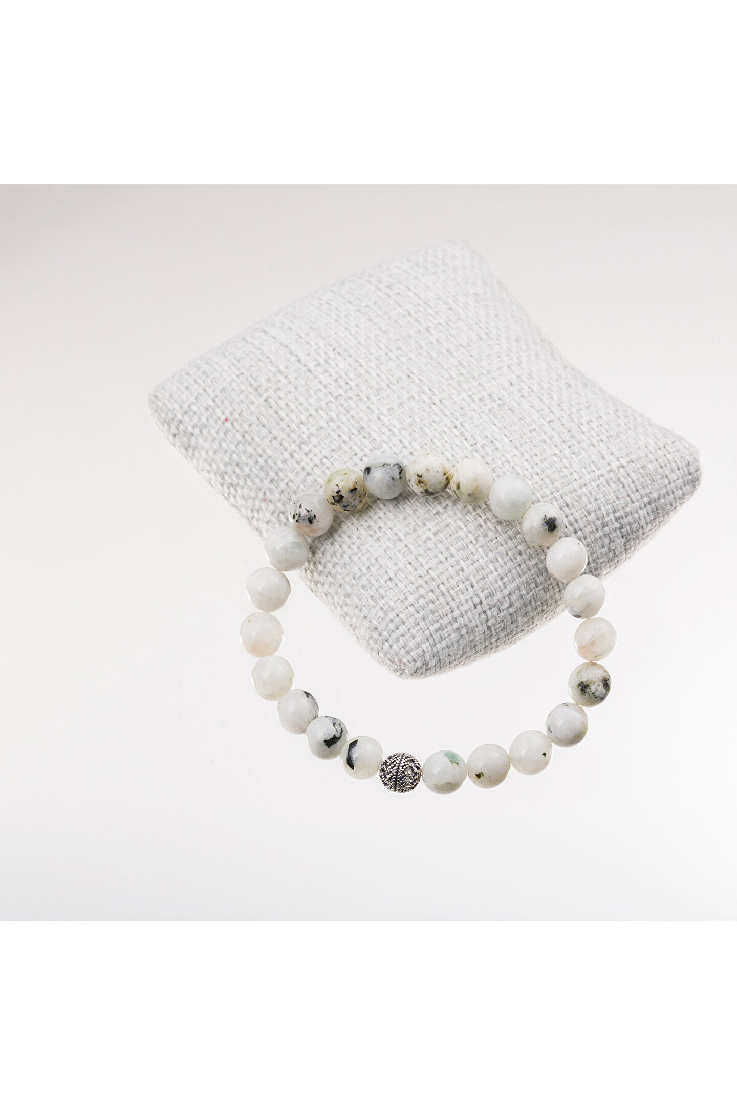 Ay taşı, gümüş bileklik ile zarif bir kombinasyon sunar ve her türlü kıyafetle uyum sağlar; Gümüş materyali sayesinde hem şıklığı hem de dayanıklılığı bir arada sunar, uzun süreli kullanım için idealdir; 8 mm boyutundaki ay taşı, bileklik üzerinde dikkat çekici bir detay olarak öne çıkar ve göz alıcı bir görünüm sağlar;
