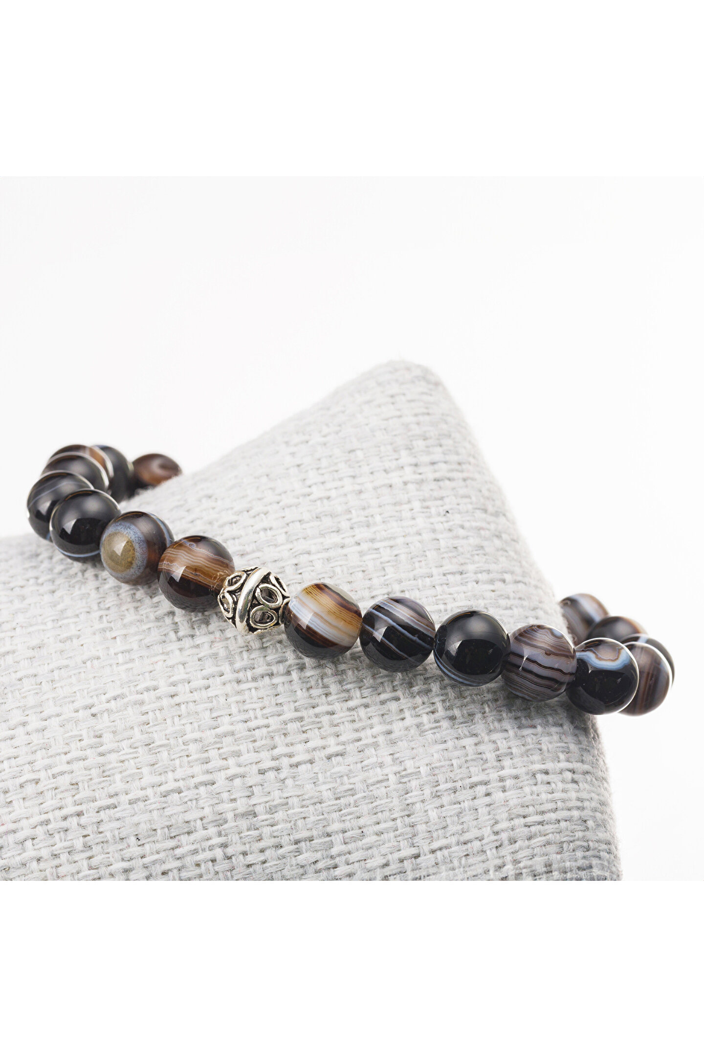 Taşta Moda Göz Akik Taşı Gümüş Bileklik-8 mm