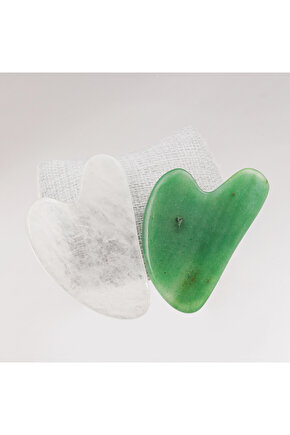 Taşta Moda Kristal Kuvars ve Aventurin Taşı Yüz Masaj Aleti Seti-Gua Sha