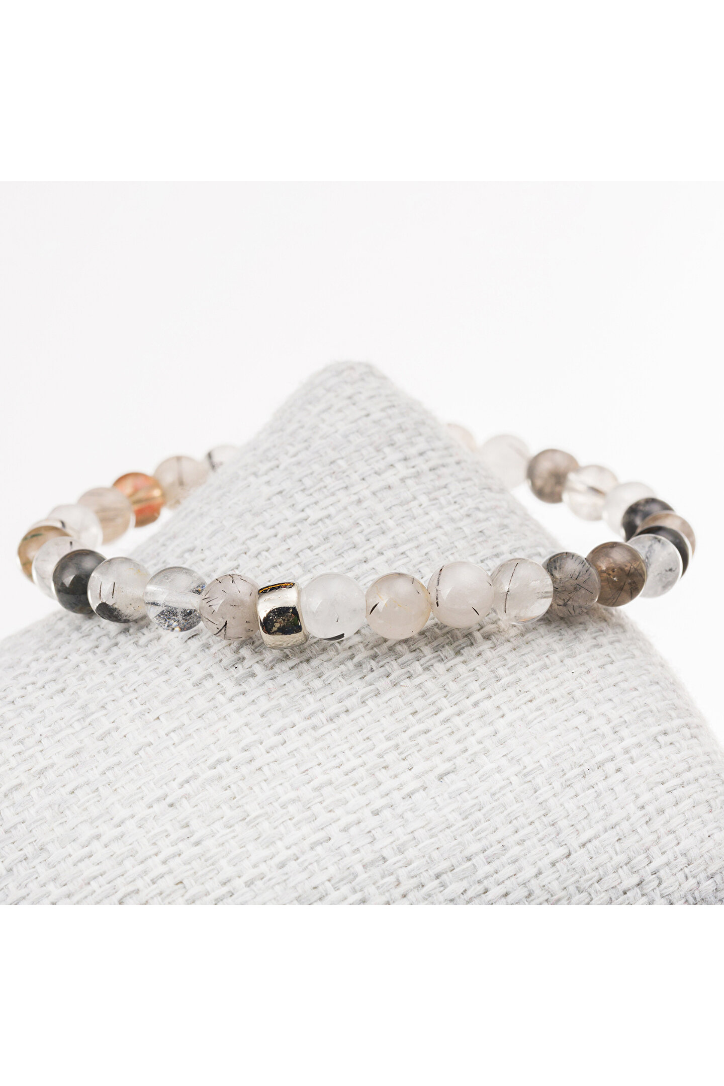 Doğal taş kullanımı sayesinde her bileklik benzersiz ve otantik bir görünüm sunar; Rutil kuvars taşı, bilekliğe zarif bir parlaklık ve şıklık katar; 6 mm boyutundaki bu bileklik, hem günlük kullanım hem de özel günler için idealdir; Doğal taş materyali ile hem dayanıklılık hem de estetik bir dokunuş sağlar;