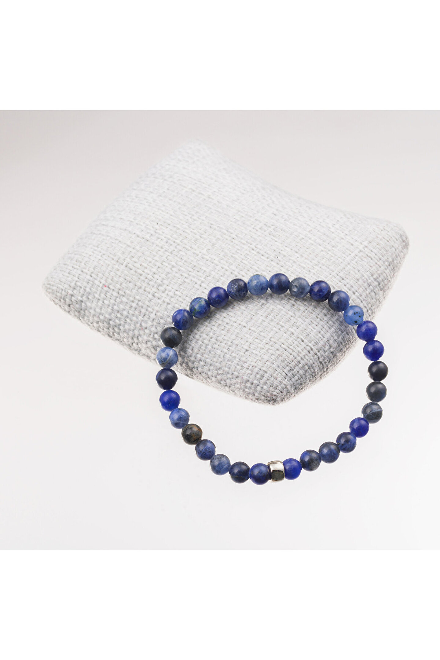 Doğal Sodalit taşı kullanılarak üretilmiş, şıklığı ve doğallığı bir arada sunan bileklik; 6 mm boyutundaki zarif tasarımıyla, her türlü kıyafetle kolayca uyum sağlar ve stilinizi tamamlar; Doğal taş materyali sayesinde her bileklik benzersiz ve eşsiz bir görünüm kazanır; her biri farklı renk ve desenlerde olabilir; Sodalit taşı, enerji taşı olarak bilinir ve pozitif enerjiyi yansıtarak gün boyu kendinizi daha huzurlu ve motive hissetmenizi sağlar;