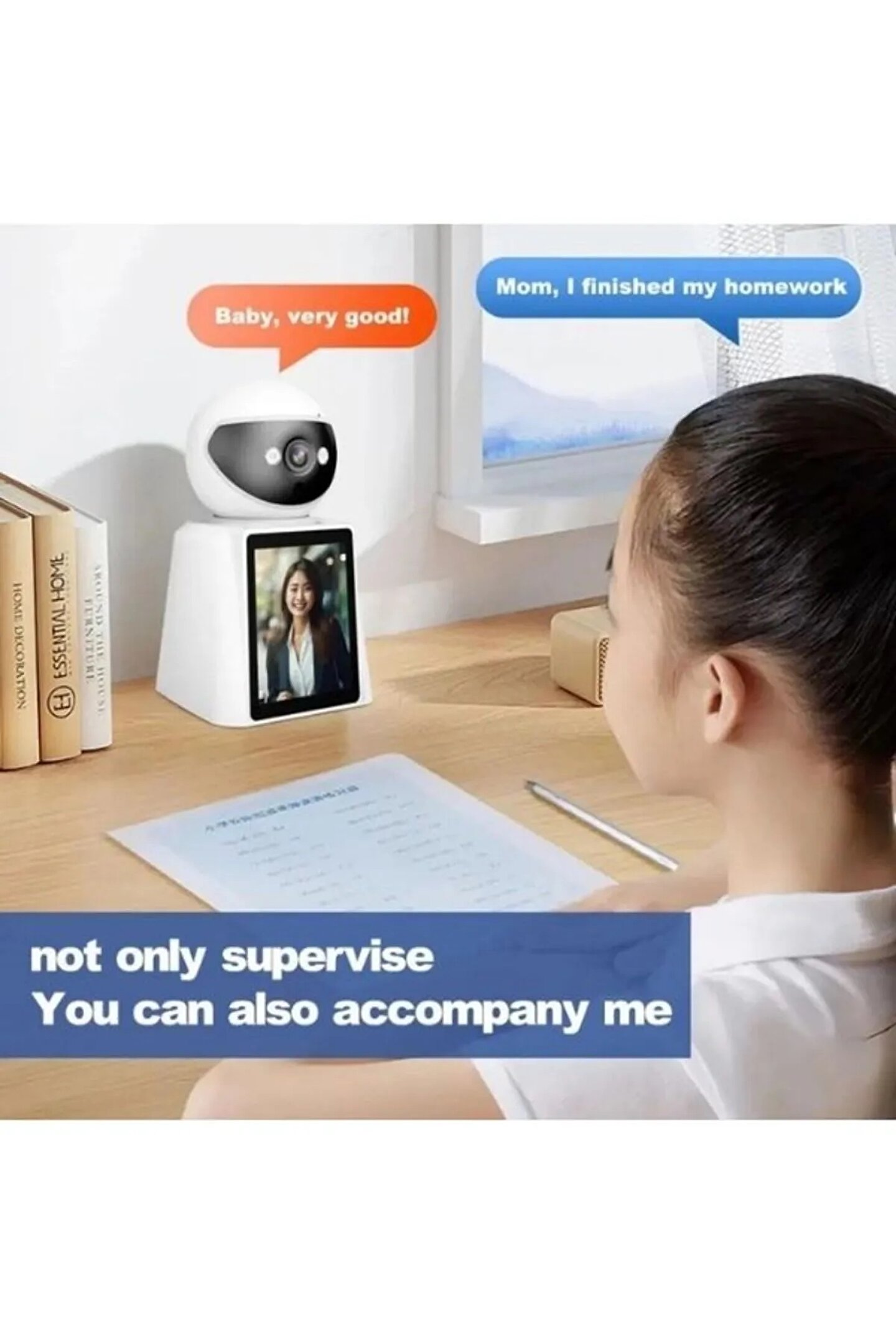 Bu ürün hakkında 1080P WiFi Kamera: Akıllı görüntülü arama kamerası 1080P yüksek çözünürlüklü çözünürlüğe sahiptir ve net ve pürüzsüz gerçek zamanlı videolar görüntüleyerek evinizi, çocuklarınızı, yaşlılarınızı, köpeklerinizi, evcil hayvanlarınızı her zaman ve her yerde takip etmenize olanak tanır. Kamera 2.4G WiFi için uygundur ancak 5G’yi desteklememektedir. ; Geniş Uygulama: Bu yenilikçi görüntülü görüşme akıllı kamerası, meşgul ebeveynler, uzun süreli iş gezilerindeki aile üyeleri ve yaşlılara ve çocuklara bakmak isteyen herkes için mükemmeldir. Görüntülü görüşmeler aracılığıyla ailenizi yakından izleyebilir ve herhangi bir değişiklik veya güvenlik sorununa hızlı bir şekilde yanıt verebilirsiniz. ; Daha kolay arama: Görüntülü arama kamerası, cep telefonları ve cihazlar arasında kolay görüntülü arama yapılmasına olanak tanır. Bu özellik, telefonlarını kullanmakta zorluk çekebilecekleri için özellikle yaşlı veya küçük çocukları olan aileler için kullanışlıdır. Yaşlılardan küçük çocuklara kadar herkes tek bir tuşa basarak istedikleri zaman ve istedikleri yerde görüntülü görüşme yapabilir ve sevdiklerini görüntüleyebilir. ; 2 Yönlü Video: Akıllı görüntülü arama kamerası, 2,8 inç yüksek çözünürlüklü ekrana ve 2 yönlü görüntülü aramaya sahiptir. Ev kamerası daha iyi etkileşim ve iletişim sağlar ve ailenizle ve hatta yaramaz evcil hayvanlarla iletişim kurmak için 2 yönlü video kullanır. ; Gece Görüşü ve Hareket Algılama: Hareket algılama sensörleri, 360° geniş açı ve net gece görüş fonksiyonuyla bu kamera, her köşeyi izlemenize, hiçbir hareketin göz ardı edilmemesini sağlamanıza ve karanlıkta net bir şekilde görülebilmenize olanak tanıyarak ne olduğunu tespit etmenizi sağlar. 24 ve 7'de olur. ;