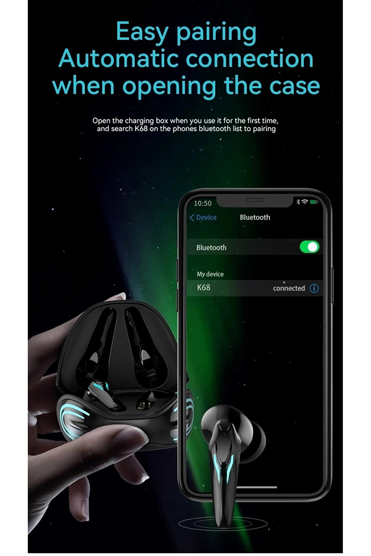 K68 Bluetooth Kulaklık Akıllı Gürültü Azaltma, olağanüstü özellikleriyle kullanıcılarına benzersiz bir deneyim sunuyor. Bluetooth 5.1 ile 10 metreye kadar kesintisiz bağlantı sağlayarak özgürce hareket etmenizi sağlar. -42DBV / PA mikrofon hassasiyeti, net ve kesintisiz iletişim imkanı sunar. 32mAh’lik kulaklık kapasitesi ve 380mAh’lik şarj kutusuyla uzun süreli müzik çalma ve oyun keyfi sunar. Hızlı şarj özelliğiyle kulaklık 1.5 saatte, şarj kutusu ise 2 saatte tamamen şarj olur. Minimum eşleştirme süresi sayesinde hızlı bir şekilde kullanıma hazır hale gelir. 60ms düşük gecikme ve özel oyun efektleri, eğlenceli ve akıcı bir oyun deneyimi sunar. İkili mikrofon düşürücü işlemi, gürültüyü etkili bir şekilde bastırır ve net iletişim sağlar. K68, ses dalgalarını etkili bir şekilde iptal ederek, rahatsız edici gürültülerden arınmış bir ortamda saflığı yakalamanıza olanak tanır. Bluetooth sürümü: 5.1 2. ; Bluetooth Etkili Mesafe: 10m ; Mikrofon Hassasiyeti: -42DBV / PA ; Kapasite: 32mAh (kulaklık) / 380mAh (şarj kutusu) ; Müzik çalma süresi: 5-6h (bir şarj) 18H şarj kutusu ile ; Şarj süresi: 1.5 saat (kulaklık) / 2 saat (şarj kutusu) ; Minimum eşleştirme, kapağı açtıktan hemen sonra bağlanın ; 60ms düşük gecikme + hassasiyetli özel münhasır oyun Özel efektler, eğlenceli ve damlayan bir oyun deneyiminin tadını çıkarın. ; İkili mikrofon düşürücü işlemi, gürültüyü görmezden gelir ve daha düzgün bir şekilde iletişim kurar. ; İkili mikrofonlar dahili ve harici sesleri tespit eder ve ses dalgaları hareketli bobin ünitesi yönünde iptal eder ve gürültüyü azaltır, böylece rahatsız edici gürültülü dünya anında saflığa geri yüklenebilir. ;