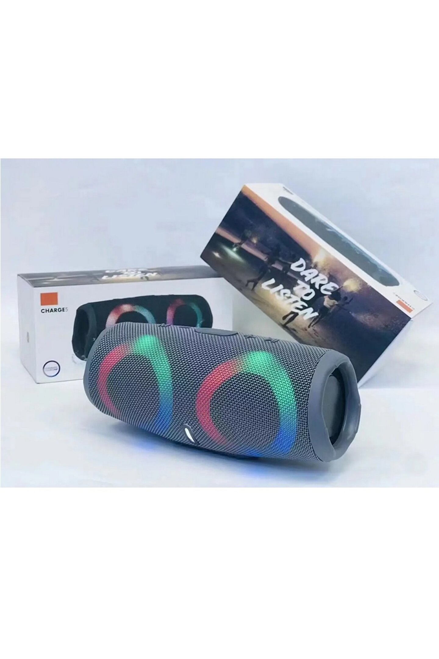 Ürün AçıklamasıÜrün adı Renkli RGB Işıklı Charge 5 10w Bluetooth 5; 0 Taşınabilir HoparlörBluetooth sürümü V5; 0Fonksiyon desteği ahizesiz arama/TF kartı/USB flash sürücü/FM radyodahili Mikrofon EvetFrekans 150HZ; 18KHZHoparlör çıkışı: 5W*2SNR ?85dbBozulma ?%0,3Şarj voltajı DC5VGiriş bağlantıları 3,5 mmPil Dahili 1200mAh lityum pilÇalışma Gerilimi 3; 3~4; 5VMuhafaza Malzemesi ABSRenk Siyah, Gri, YeşilAksesuarlar Şarj kablosu, Yardımcı giriş kablosu, MikrofonPaket Renk kutusu, özelleştirilmiş paket desteğiŞarj süresi ~ 2 saatOynatma süresi ~ 2; 4 saatBluetooth menzili 10mÜrün boyutu 222*94*97MM;