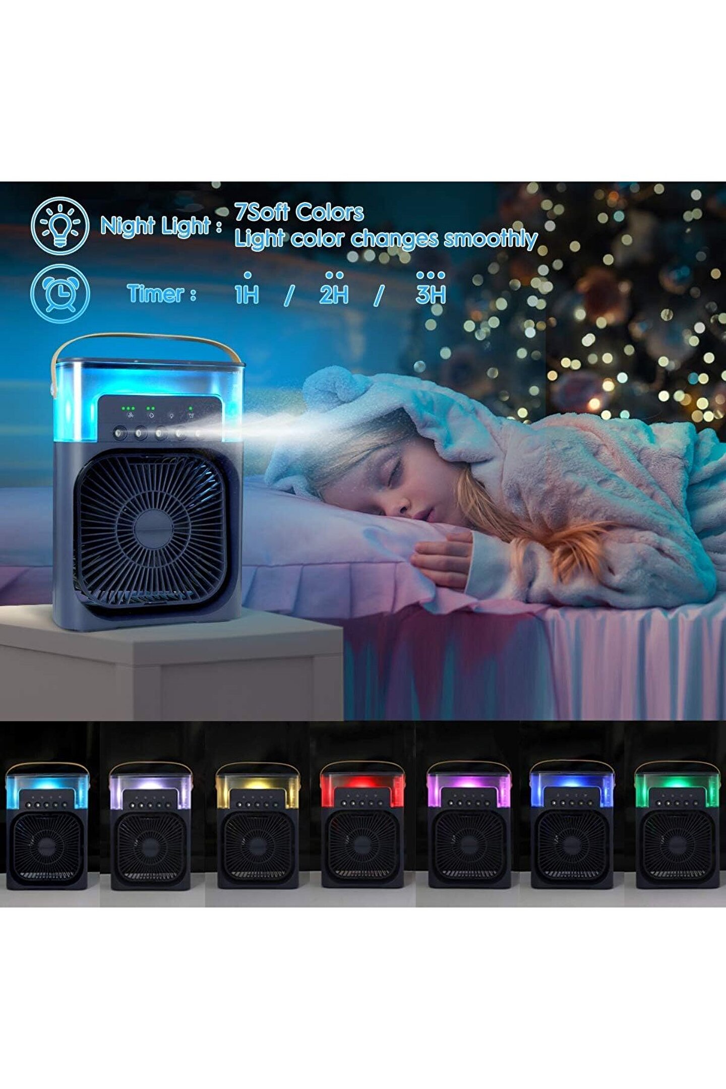 Kişisel klima 7 renkli LED ışıkları görüntüleyebilir, en sevdiğiniz rengi istediğiniz zaman seçebilirsiniz ve ayrıca bir degrade modu vardır. Ailenize daha fazla eğlence getirin. Gece lambası olarak da kullanılabilir. Işık yumuşaktır ve dinlenmeniz için sizi rahatsız etmeyecektir ancak ışığa karşı çok hassassanız kapatabilirsiniz.