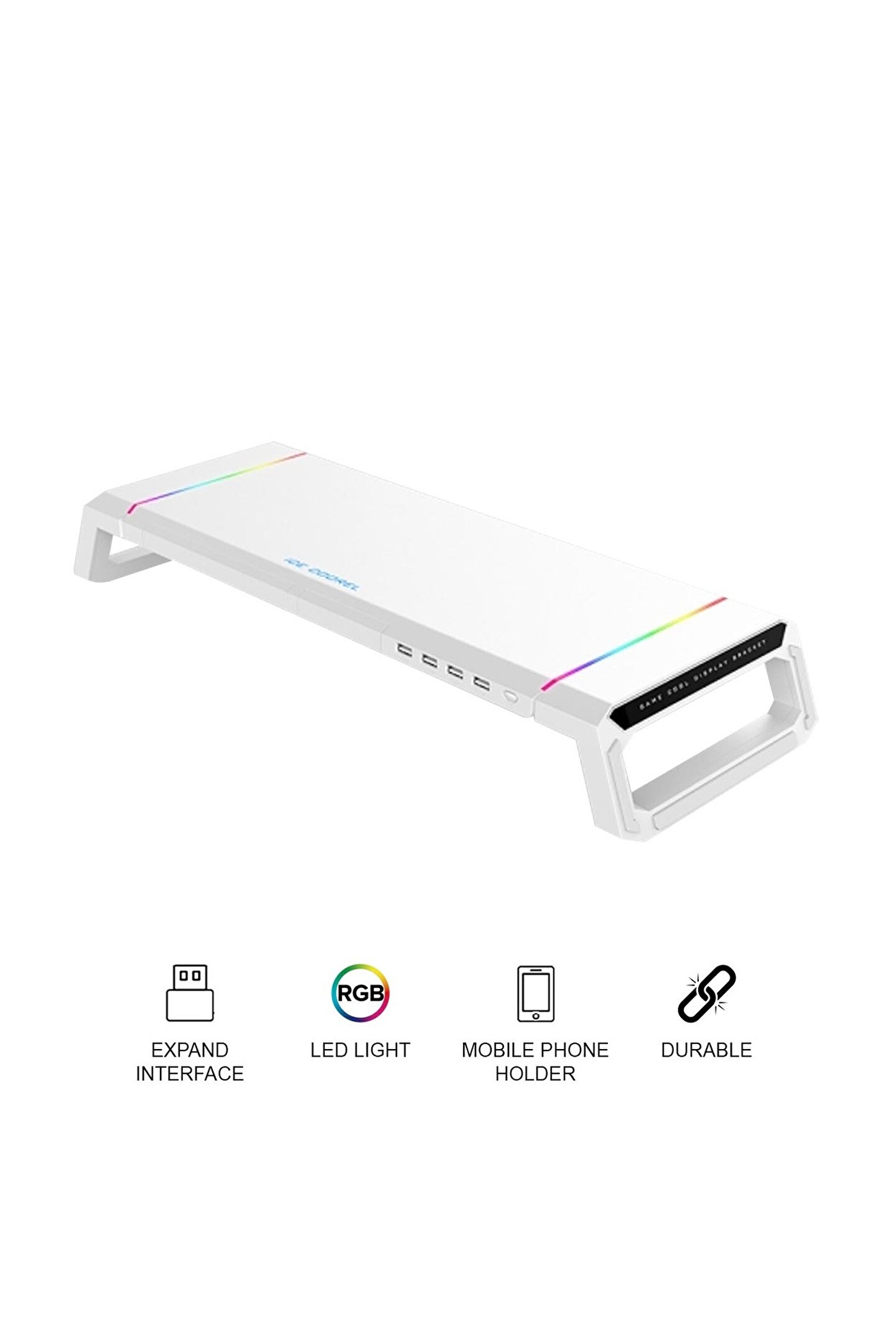 Tastech Laptop Sehpası RGB Işıklı Mönitör Standı Ekran Altlığı 4 Usb Hub Telefon Tutuculu BEYAZ