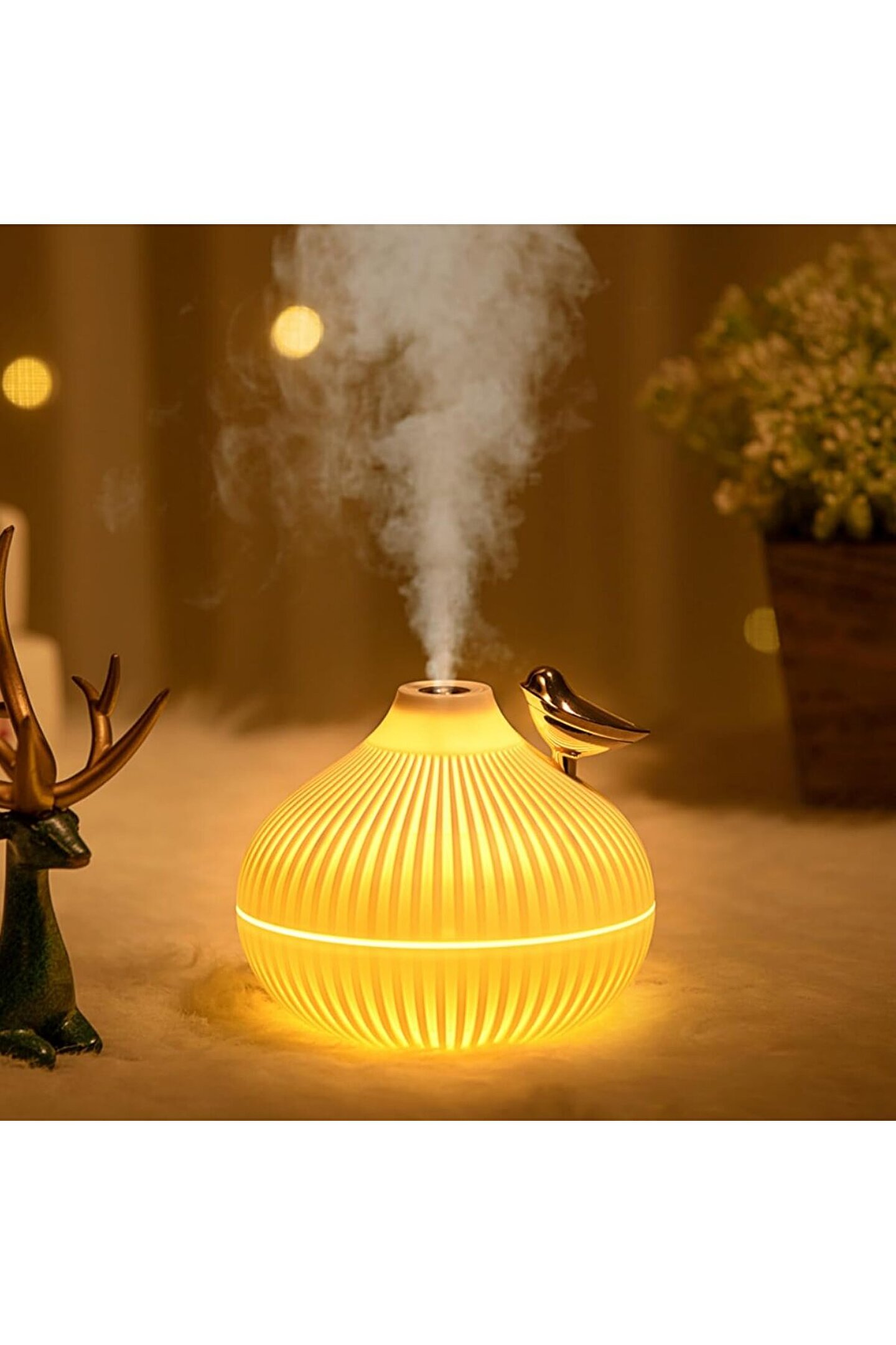 Parametre Boyut: 116,2*116.2*102,8mm Gerilim: DC 5V Güç: 2,2W Malzeme: ABS/PP Su Kapasitesi: 300ml Zamanlayıcı: 4 saat boyunca sürekli püskürtme 8H için aralıklı sprey Sprey için çalıştırma talimatları: ·Sürekli püskürtme modunu başlatmak için ilk kez düğmeye tıklayın; · Aralıklı püskürtme moduna geçmek için tuşa ikinci kez tıklayın; ·Tüm püskürtme modlarını kapatmak için tuşa üçüncü kez basın (bu döngü) Ortam aydınlatmasına ilişkin kullanım talimatları: · Sıcak sarı ışık modunu etkinleştirmek için ilk kez tıklayın ve basın, · İkinci tıklama doğal beyaz ışık modundadır, · Sıcak sarı ve beyaz ışıkların üçüncü tıklaması aynı anda yanacaktır, ·Tüm ışıkları kapatmak için dördüncü tıklama (döngüden geçiş) Bağlantı Yolları 1. dizüstü bilgisayar USB bağlantı noktası 2. güç bankası 3. telefon şarj cihazı Paketleme listesi Nemlendirici*1,USB Kablosu*1,Manuel*1