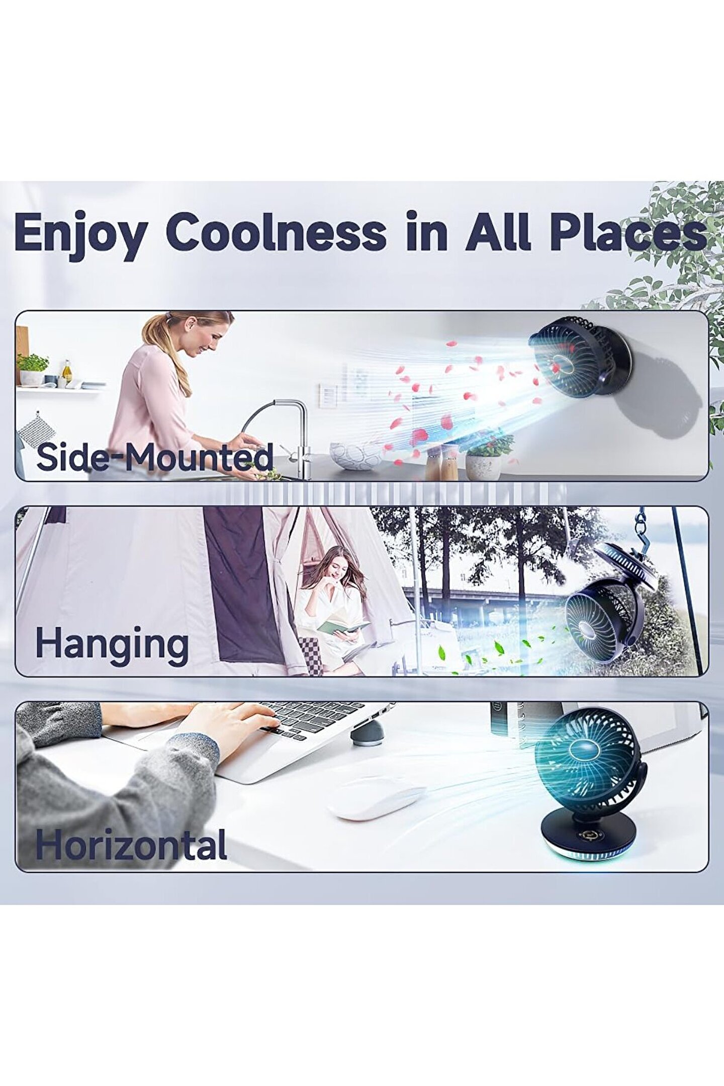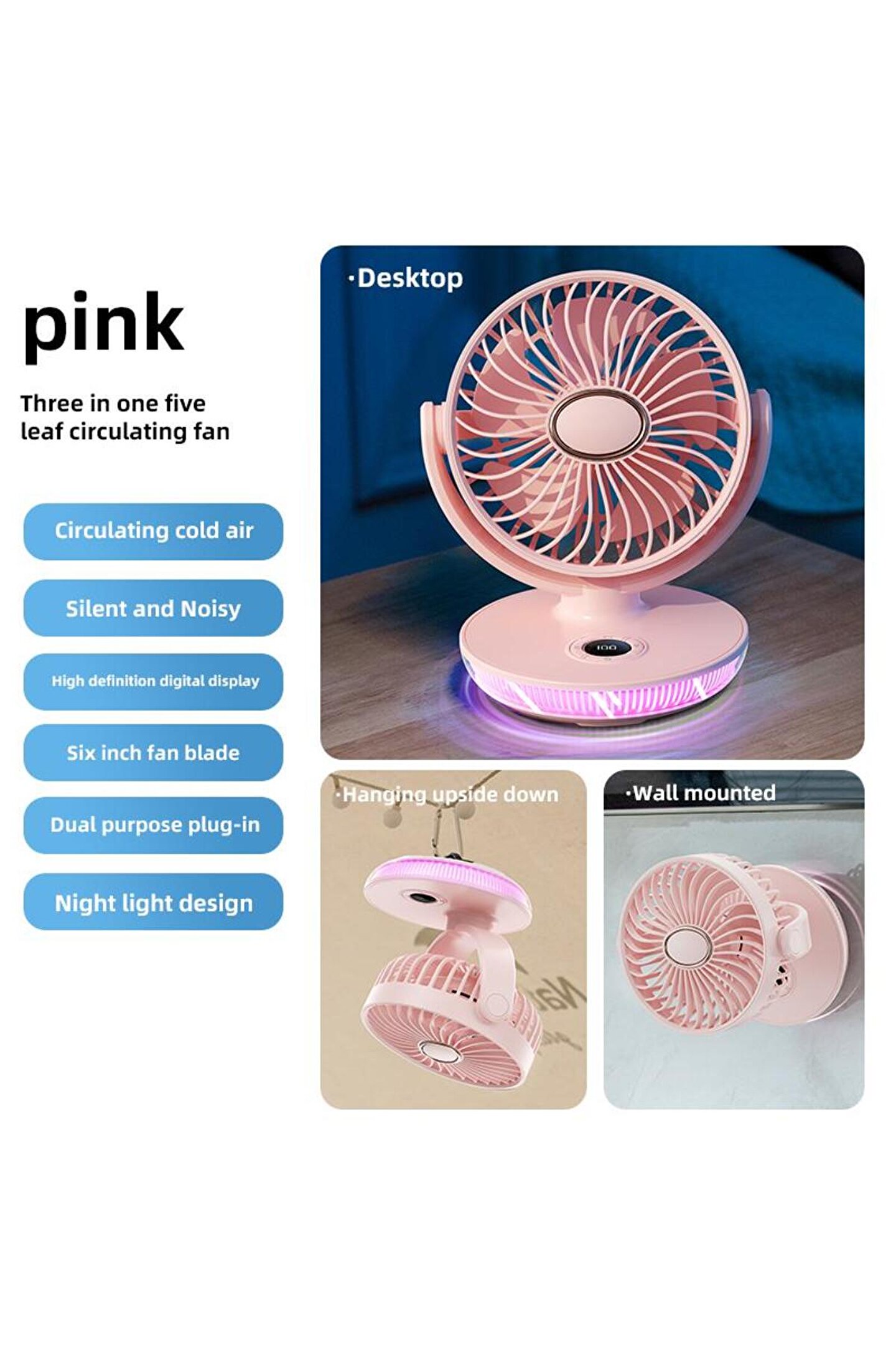; Güç Kaynağı ; Pil, Usb, Elektrik Özellikli fonksiyonu Işık ile, Night Light Table Lamp Marka adı cnbewin Model Numarası N26 Boyutlar (U x G x Y (cm) 17 * 14 * 19cm Güç (W) 5W Voltaj (V) 3.5V Satış sonrası hizmet sağlanan Hiçbiri Garanti 1 yıl Malzeme Plastik madde ağırlığı 560g rüzgar hızı beş Işletim Dili İngilizce App-kontrollü Hayır Özel kalıp Evet Logo/desen As requested Motor Fırçasız motor Kurulum On Klip Çalışma süresi 4-6hours Özellik Kolay kullanım Product name N26 Desktop Circulating Fan Color blue/white/pink Material ABS plastic Function Cooling;Lighting Type usb fan Noise 36-45db Working Time 2~7hours(2000mAH);4~14hours(4000mAH) Input 5V/1A MAX Power (W) 5W Battery model 18650 battery Ambalaj ve teslimat Satış Birimleri: Tek ürün Bir ambalaj boyutu: 21X20X20 cm