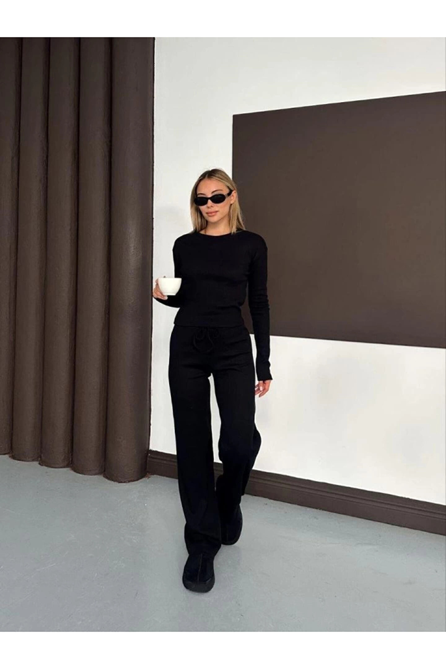 TBL DEKOR Kadın Bisiklet Yaka Parmak Geçme Detay Uzun Kollu Bluz Ve Pantolon Ikili Takım