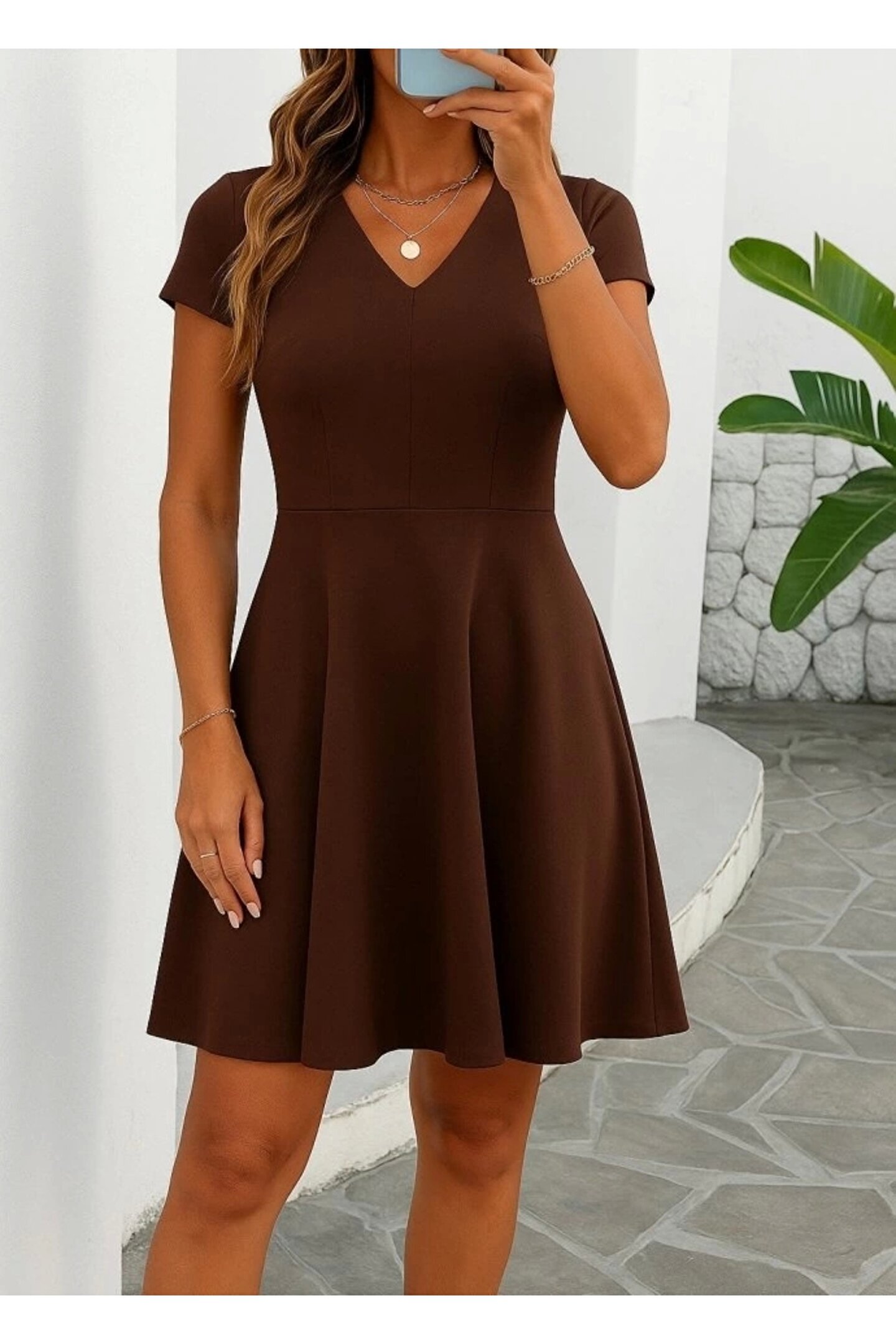 TBL DEKOR Kadın Kısa Kollu Kiloş Ithal Krep Elbise