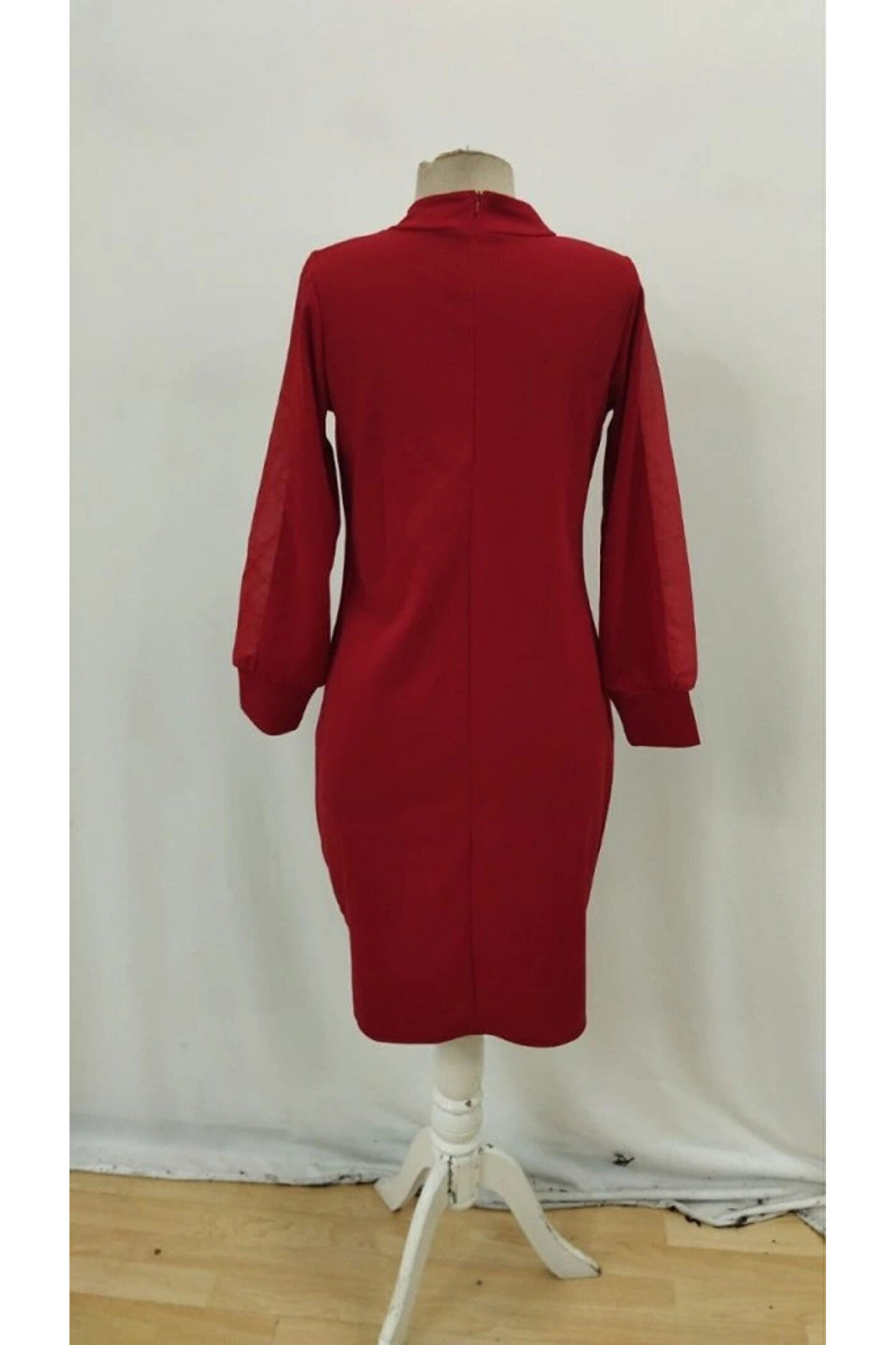 TBL DEKOR Kadın Uzun Kollu Yarı Balıkçı Yaka Tül Ve Inci Detaylı Kısa Ithal Krep Midi Elbise