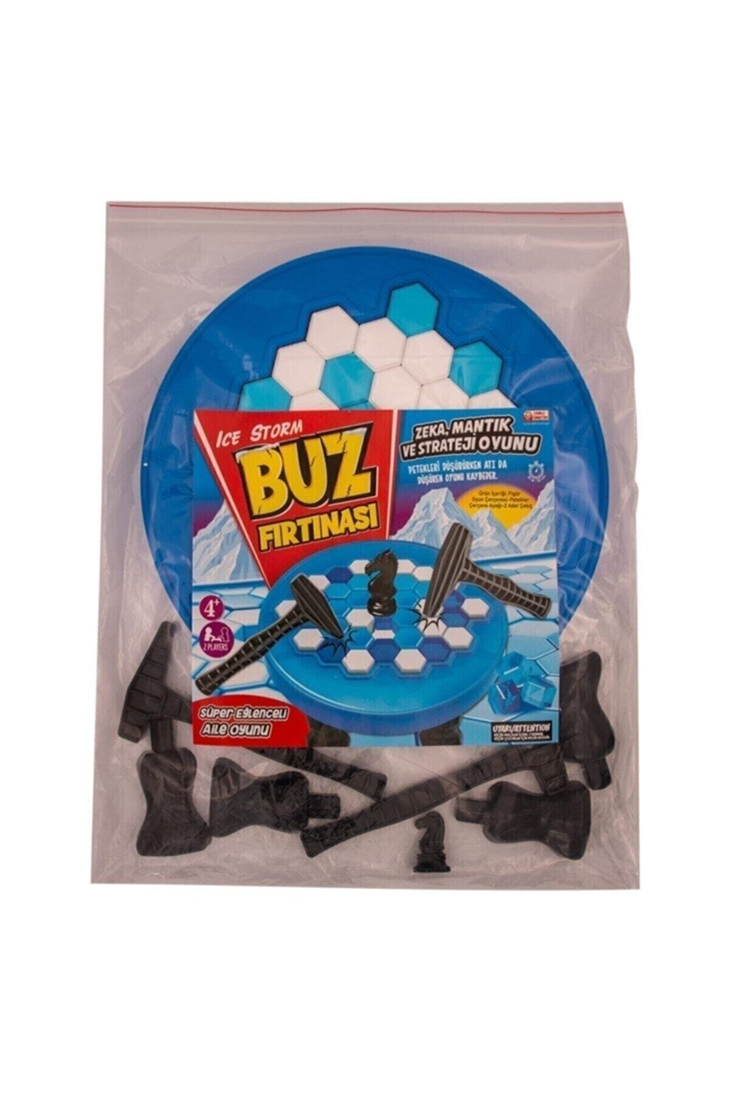 Buz Kırma Oyunu Zeno Buz Kırma Oyunu Zeno Buz Kırma Oyunu Zeno Toys Buz Küpleri Zeka, Mantık ve Strateji Oyunu Buzu Kırma ile eğlence dolu dakikalar sizi bekliyor! Çocuklar bu strateji oyununda, buz küplerini tek tek düşürerek oyunu kazanmaya çalışıyor ama bu sırada At'ı düşüren oyunu kaybediyor. ; Atı buzdan düşürmeyip oyunda kalan son oyuncu oyunu kazanıyor. ; Oyun Hazırlanışı Oyun çerçevesinin ayakları takılır. ; Oyun çerçevesi düz bir zemine ters olarak çevirilir ve buz küpleri renk ayrımı olmaksızın yerleştirilir. ; Oyun çerçevesi ayaklarının üzerinde durabilecek şekilde düz çevirilir. ; Çerçevenin orta noktasındaki buz küpünün üzerine at yerleştirilir. ; Oyun Kuralları 2 oyuncu sıra ile buz küplerine birer vuruş yaparak küpü çerçevenin dışına çıkartır. ; Oyuncu küpleri kontrol ederek vuruş yapamaz ve çekiçle ilk dokunduğu küpü düşürmek zorundadır. ; Oyun orta noktadaki atın düşmesine kadar devam eder. ; Orta noktadaki atı düşüren oyuncu oyunu kaybeder. ; Oyuncu Sayısı: 2 Paket İçerisinde: 2 plastik çekiç, Oyun çerçevesi, Çerçeve ayağı, Petekler ve 1 adet figür bulunmaktadır.;