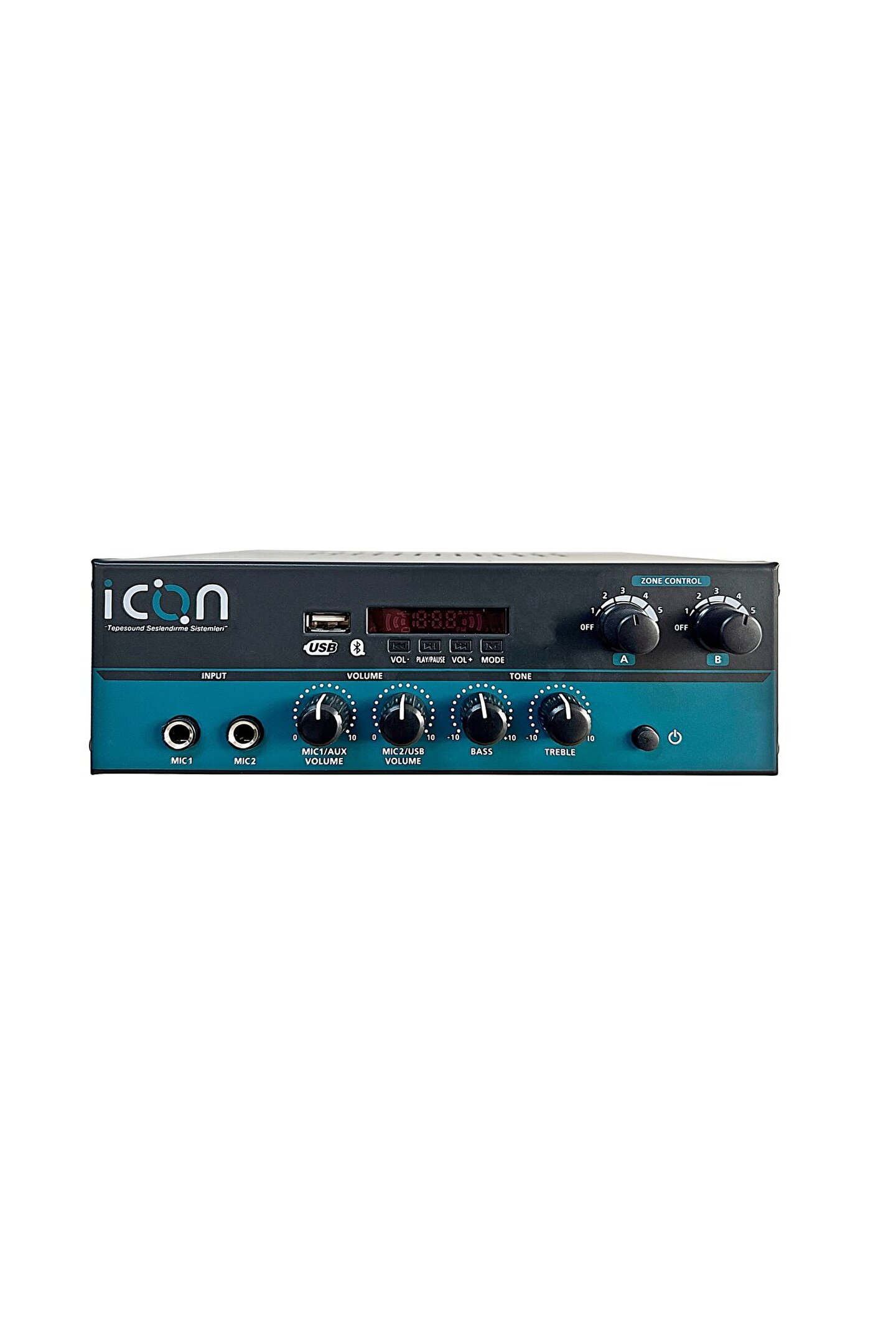 50 watt /4 ohm-100v 2 zone control 1 mikrofon ve 1 aux girişli Usb (bluetooth) Bass, tizz, echo Usb kumanda 22x17x7cm ölçülerinde 12v dc / 220v ac amplifikatör 2 yıl garantilidir Her bölgeye 5 er adet trafolu hoparlör bağlanabilir