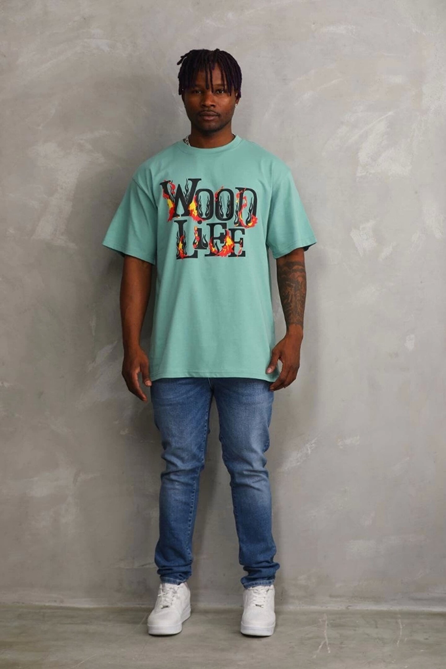 Teusta Unisex Baskılı Oversize T-Shirt - Mint Yeşili