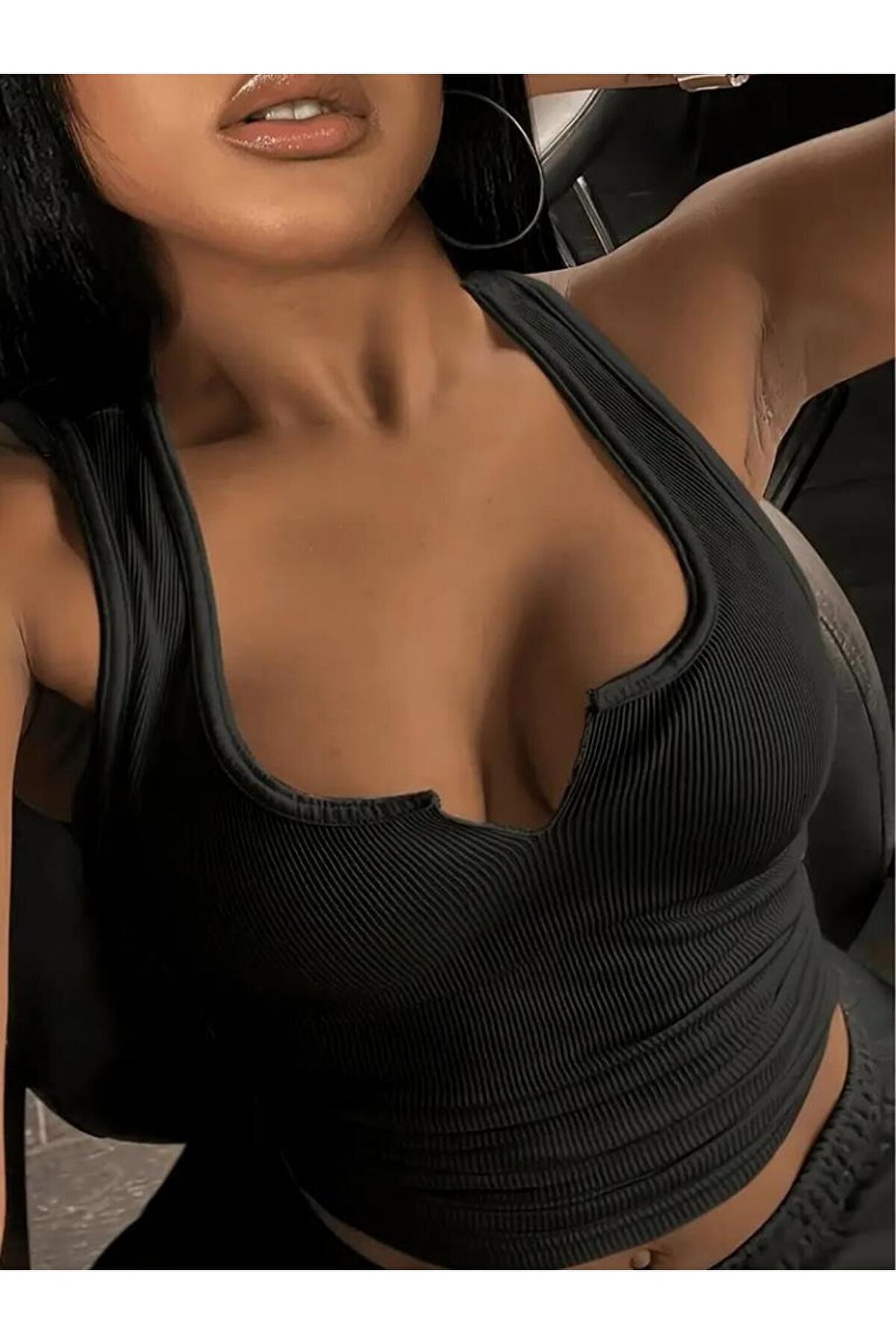 Kadın Kolsuz V Yakalı Kaşkorse Bluz