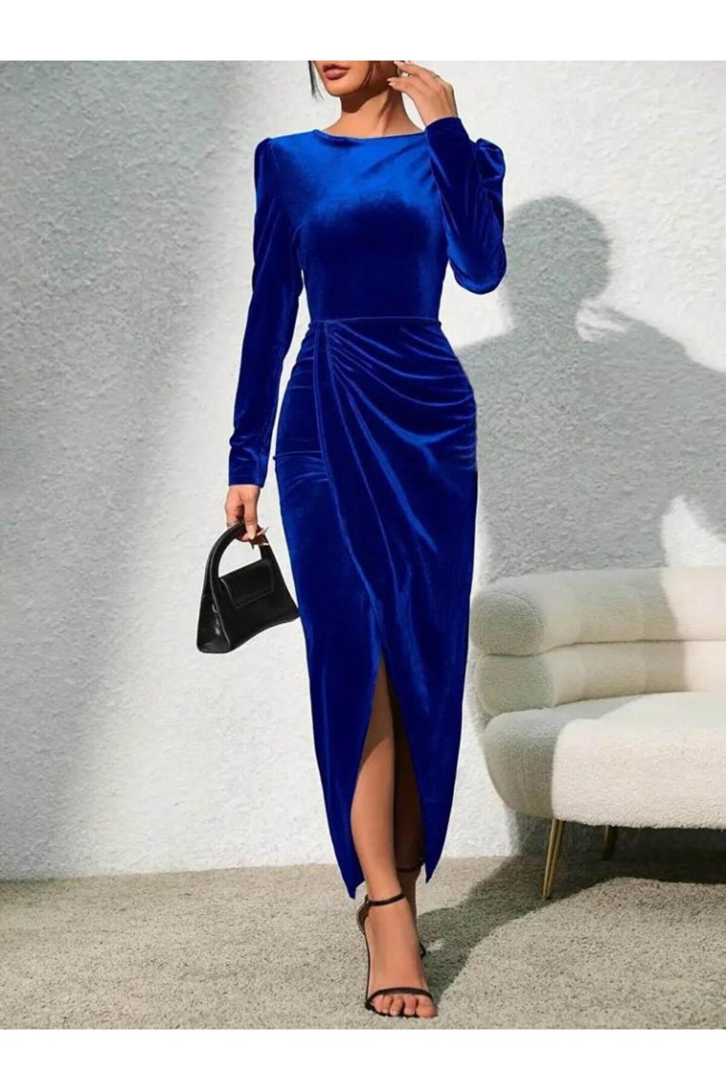 Kadın Uzun Kollu Bisiklet Yaka önden Büzgü Detaylı önden çapraz Detay