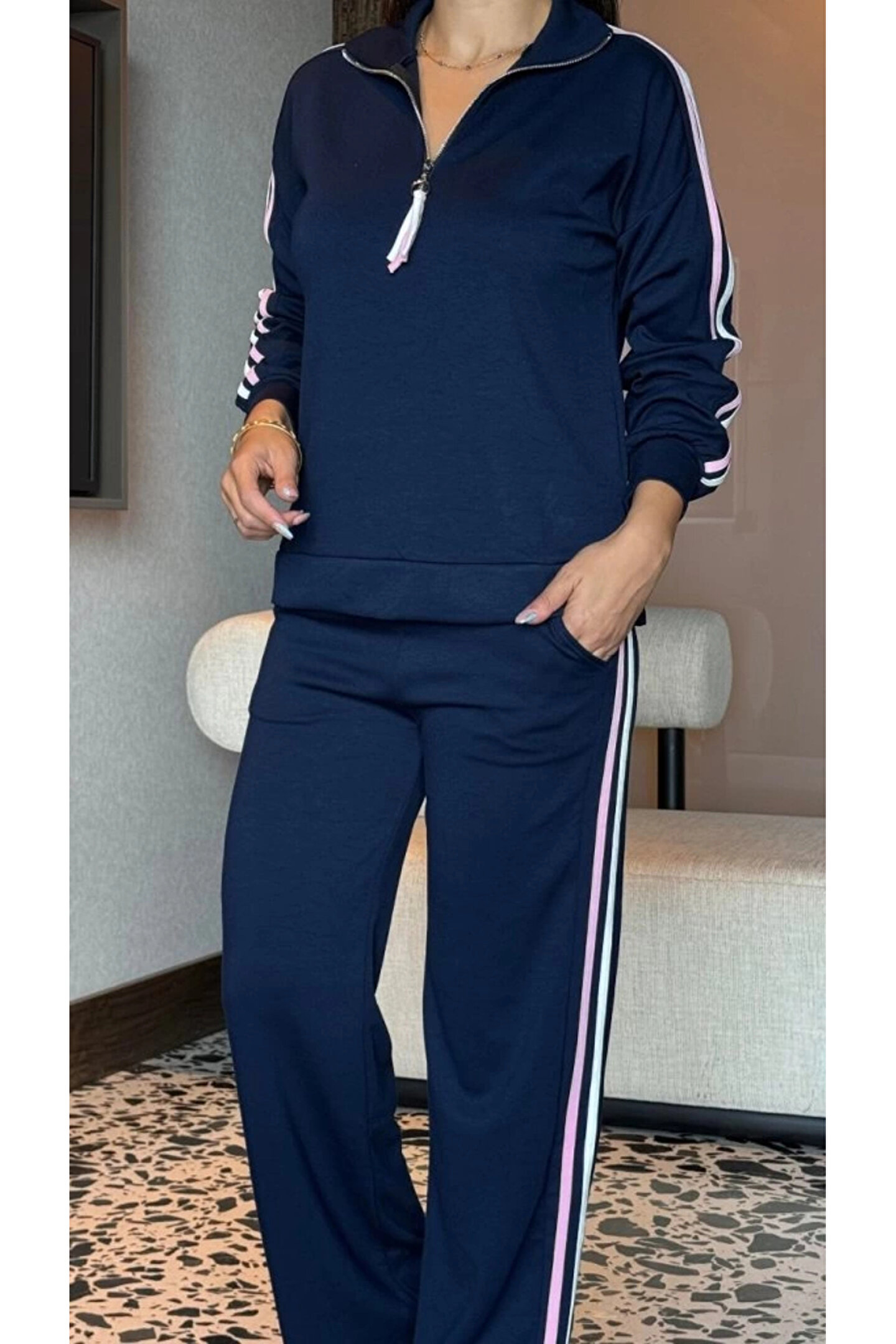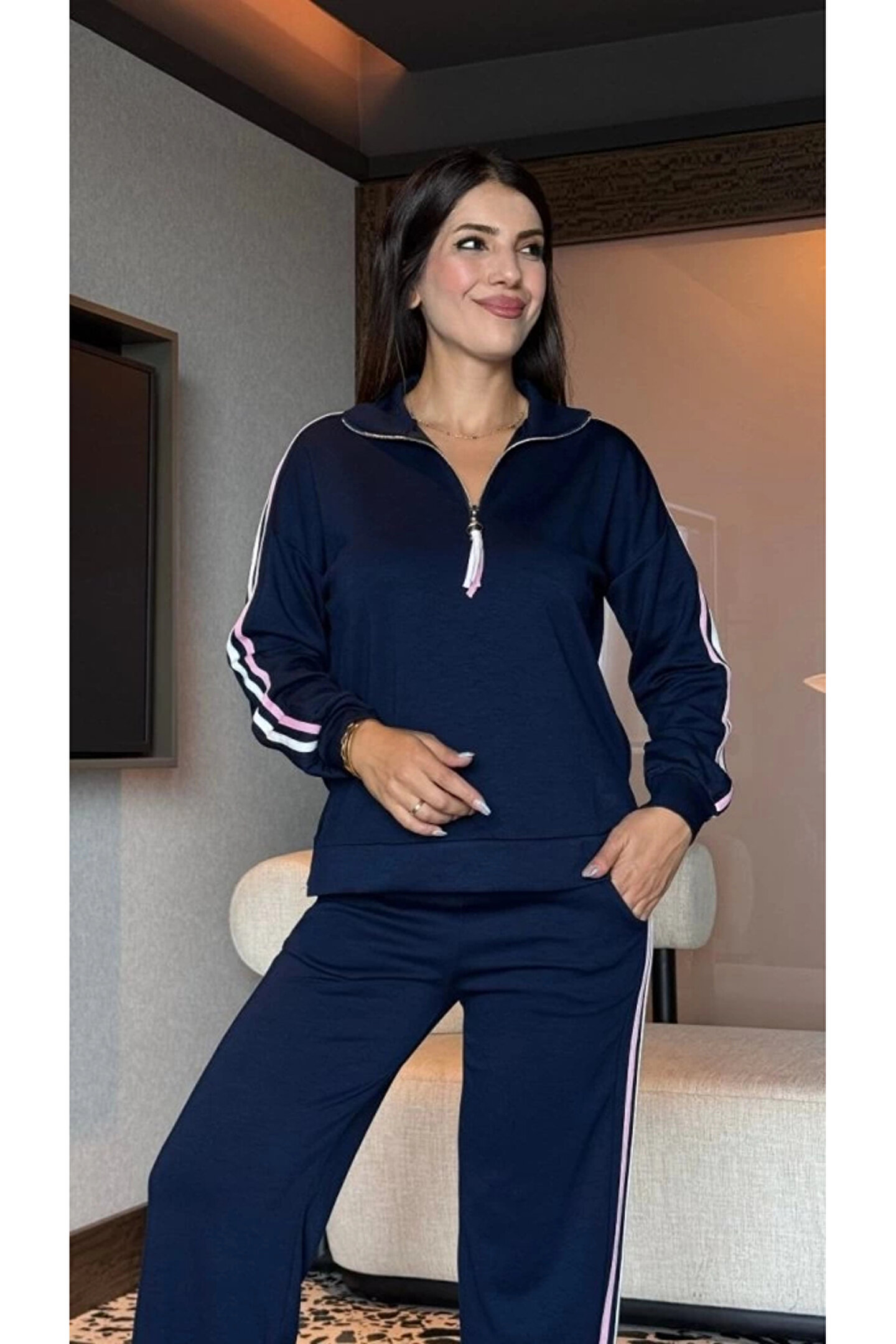 TİANA Kadın Uzun Kollu Fermuarlı Viskon Iki Iplik Bluz Ve Pantolon Ikili Takım