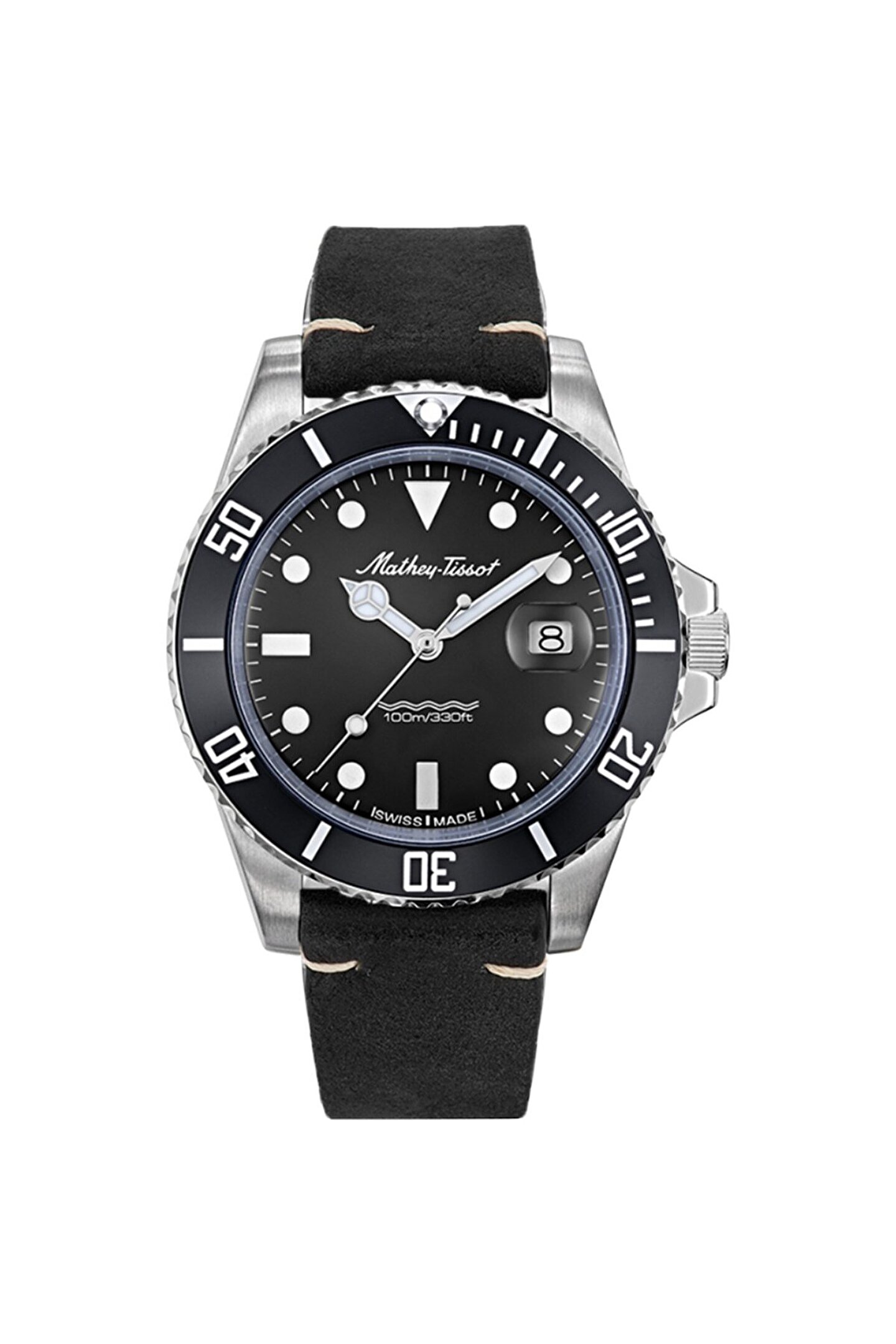 CASE: DIAMETER 42 mm CASE: THICKNESS 10 mm CASE: WATER RESISTANCE 10 ATM (100 meters, 330 feet) CASE: BACKPLATE Stainless Steel 316L CASE: GLASS Sapphire Coated BRACELET: CLASP Buckle DIAL: COLOR Black GENDER Men MOVEMENT: FUNCTION Date MOVEMENT: ORIGINE Swiss Made MOUVEMENT: TYPE Quartz COLLECTION Mathy Vintage Quartz