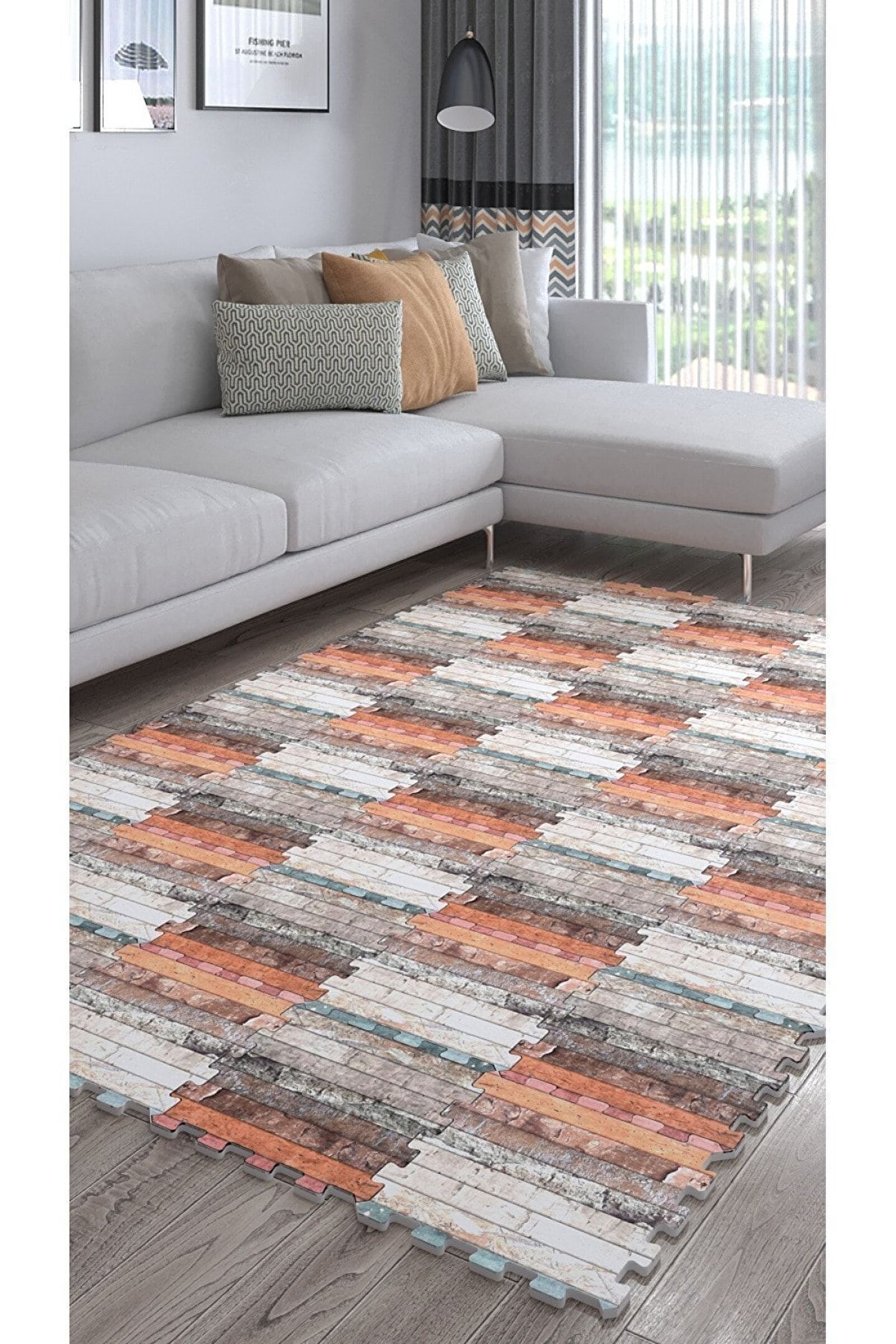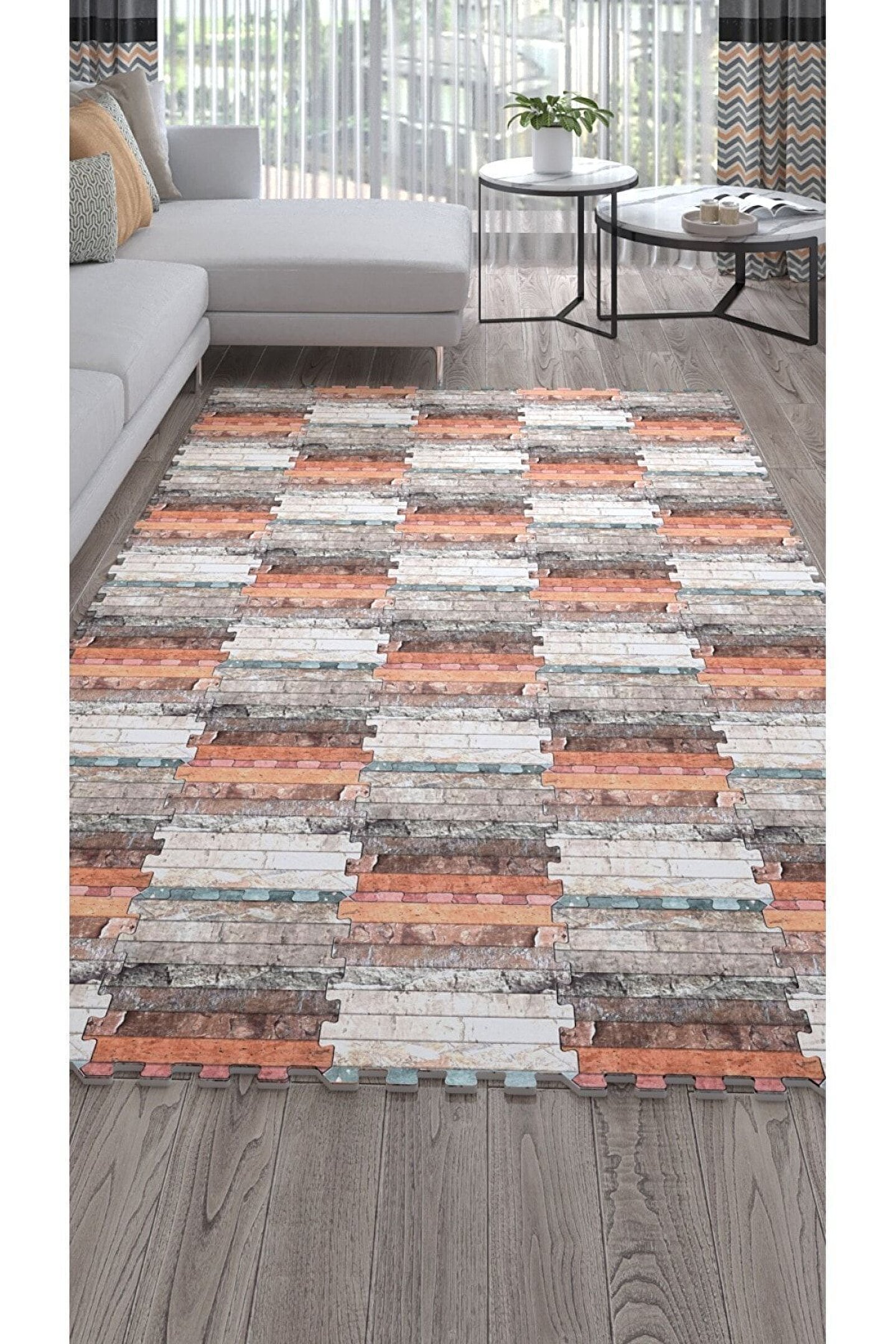 Tokyo Halı Baskılı Dekoratif Yıkanabilir Kare Salon Halısı Ths18c | Yapboz Halı | Puzzle Halı