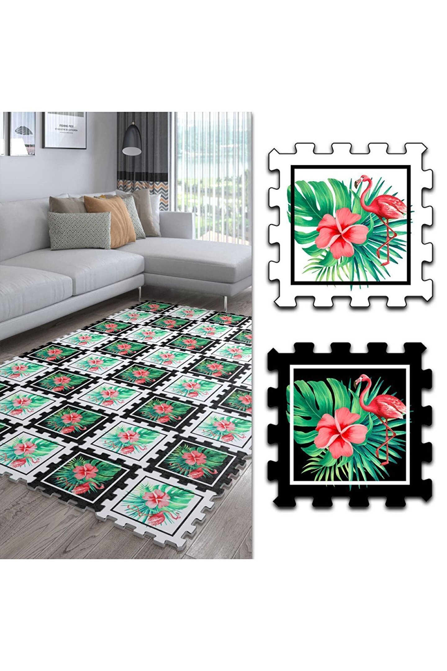 Çiçek Desenli Yıkanabilir Dekoratif Salon Halısı Ths9 | Yapboz Halı | Puzzle Halı
