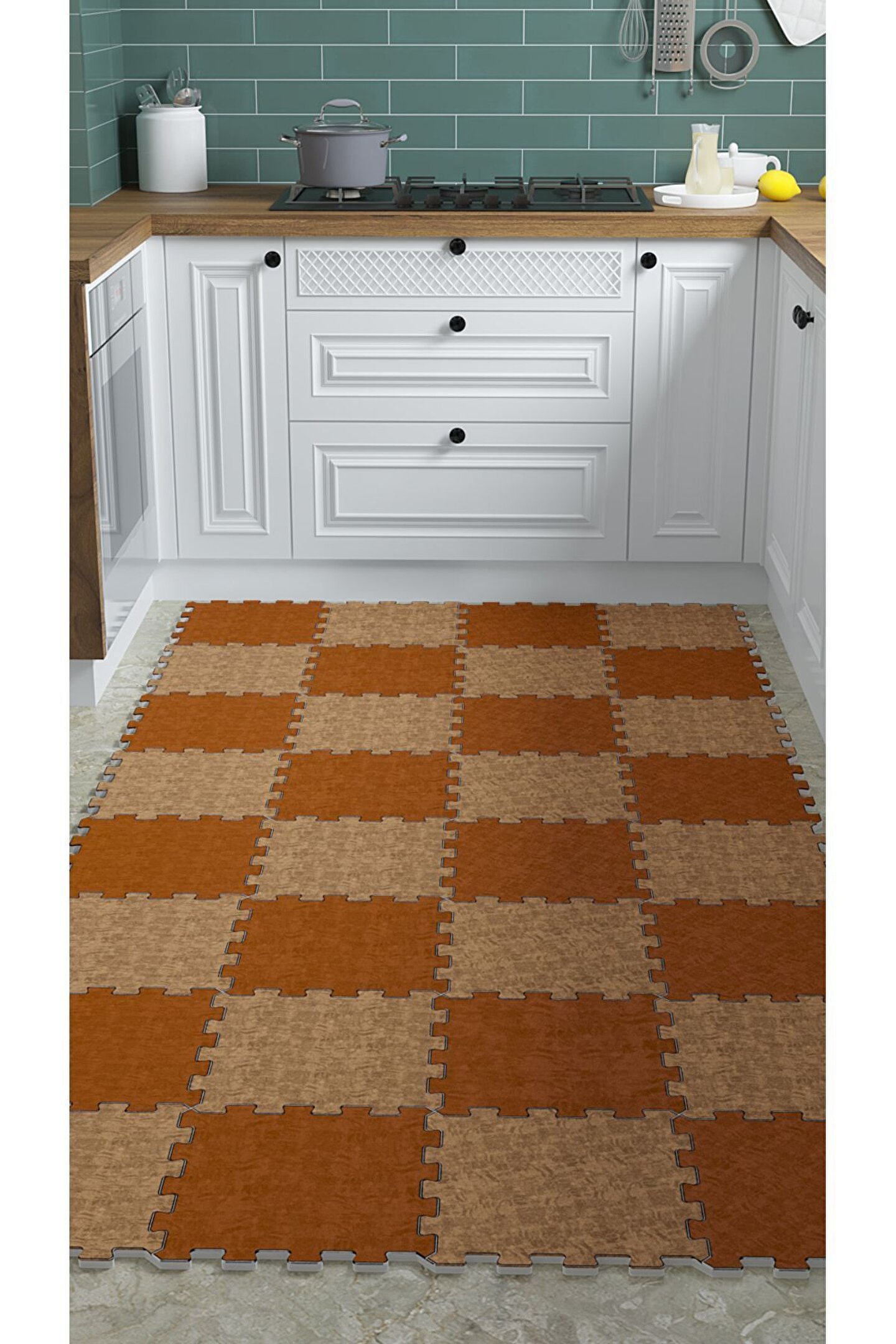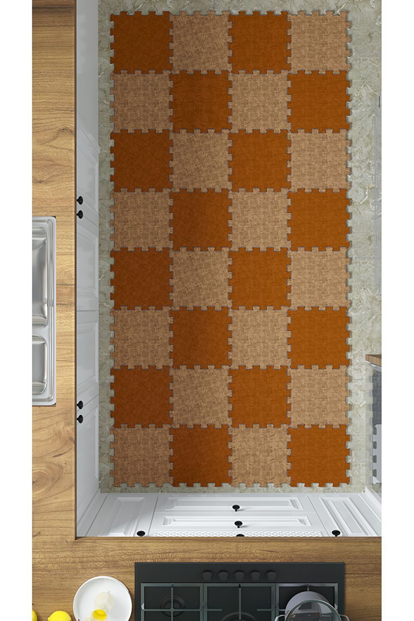 Tokyo Halı Desenli Yıkanabilir Yumuşak Mutfak Halısı Thm37 | Yapboz Halı | Puzzle Halı