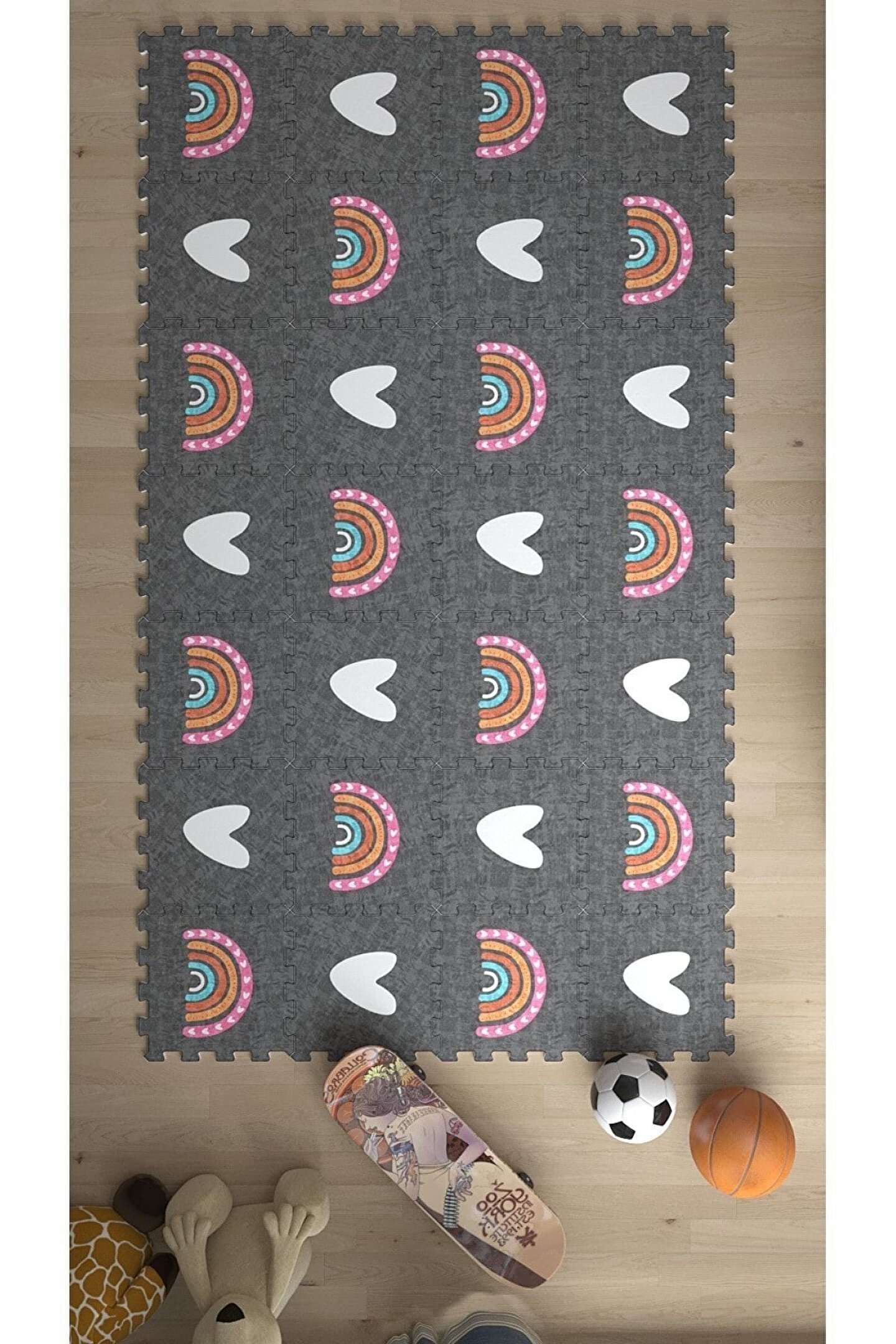 Tokyo Halı Kalpli Dekoratif Tekstil Baskılı Çocuk Odası Sı Thc11 | Yapboz Halı | Puzzle Halı