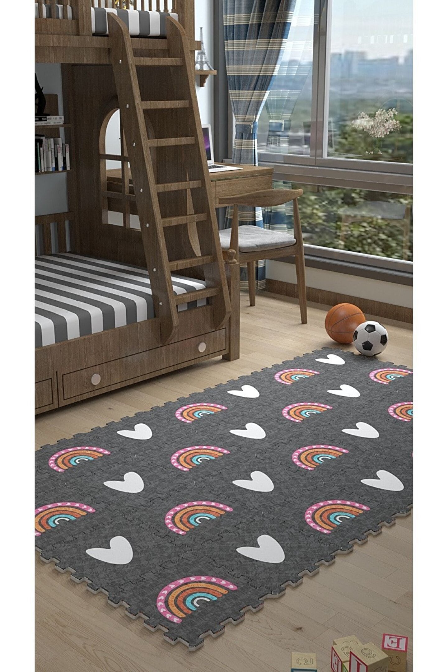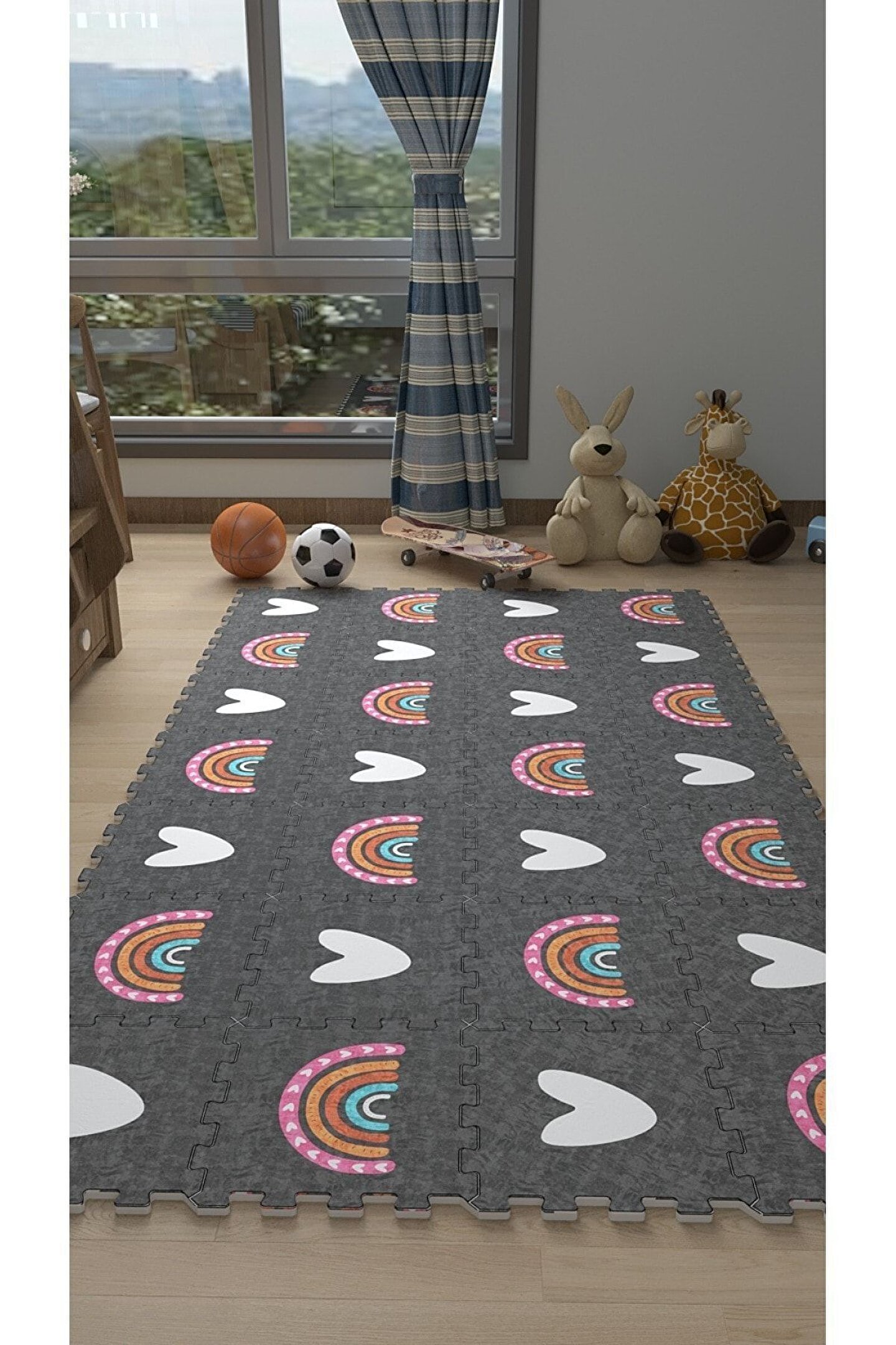 Tokyo Halı Kalpli Dekoratif Tekstil Baskılı Çocuk Odası Sı Thc11 | Yapboz Halı | Puzzle Halı