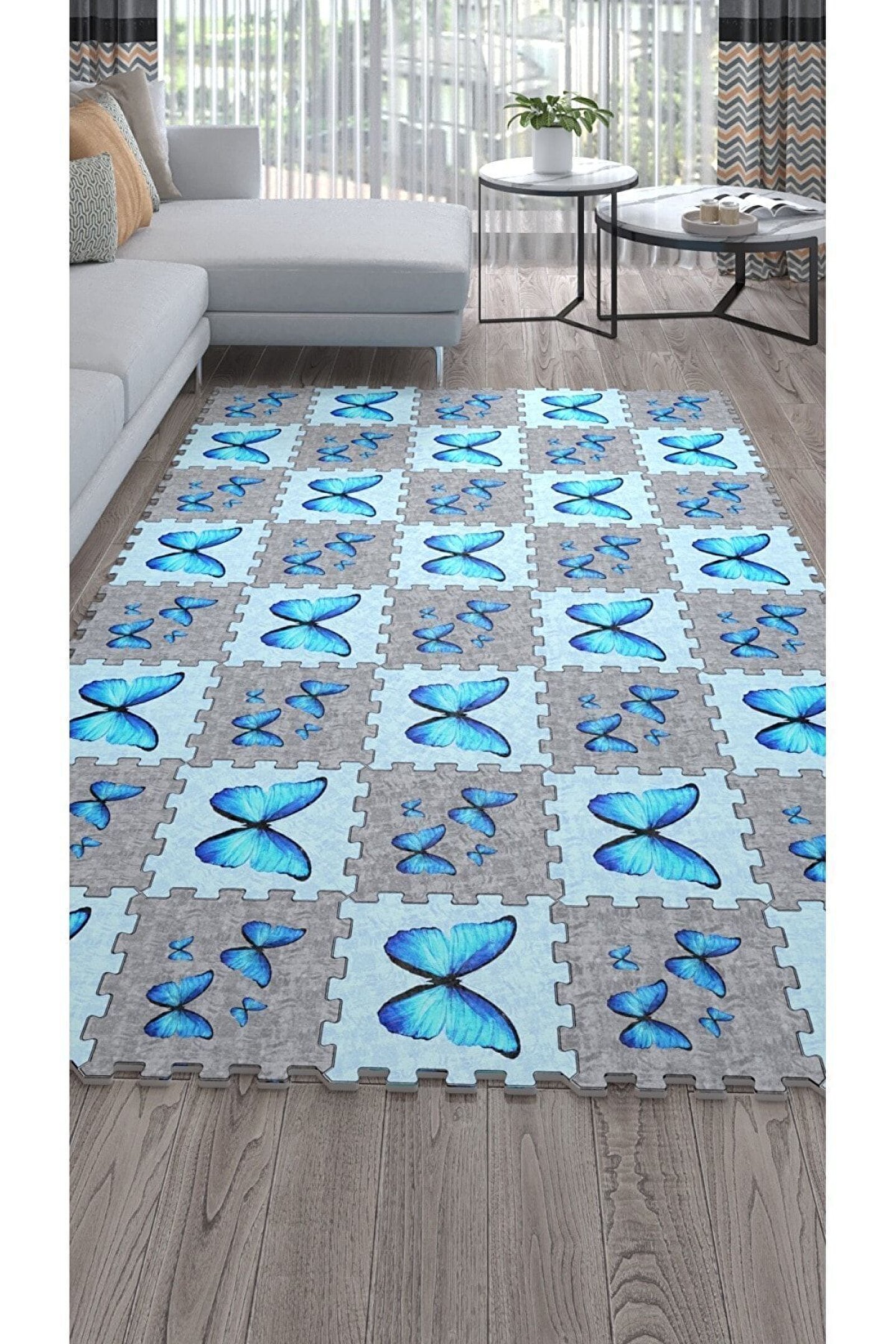 Tokyo Halı Kelebek Desenli Dekoratif Salon Halısı Ths26 | Yapboz Halı | Puzzle Halı