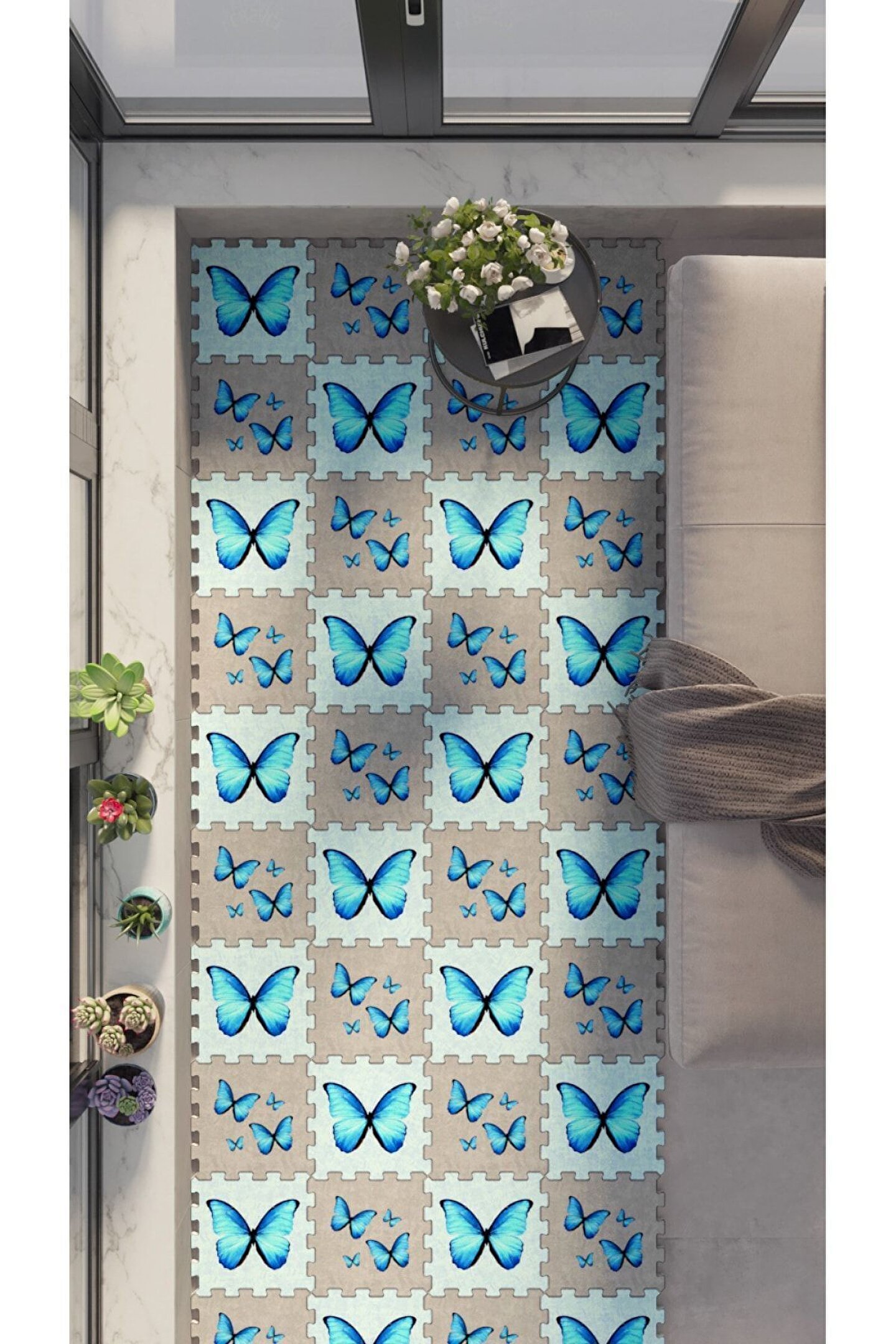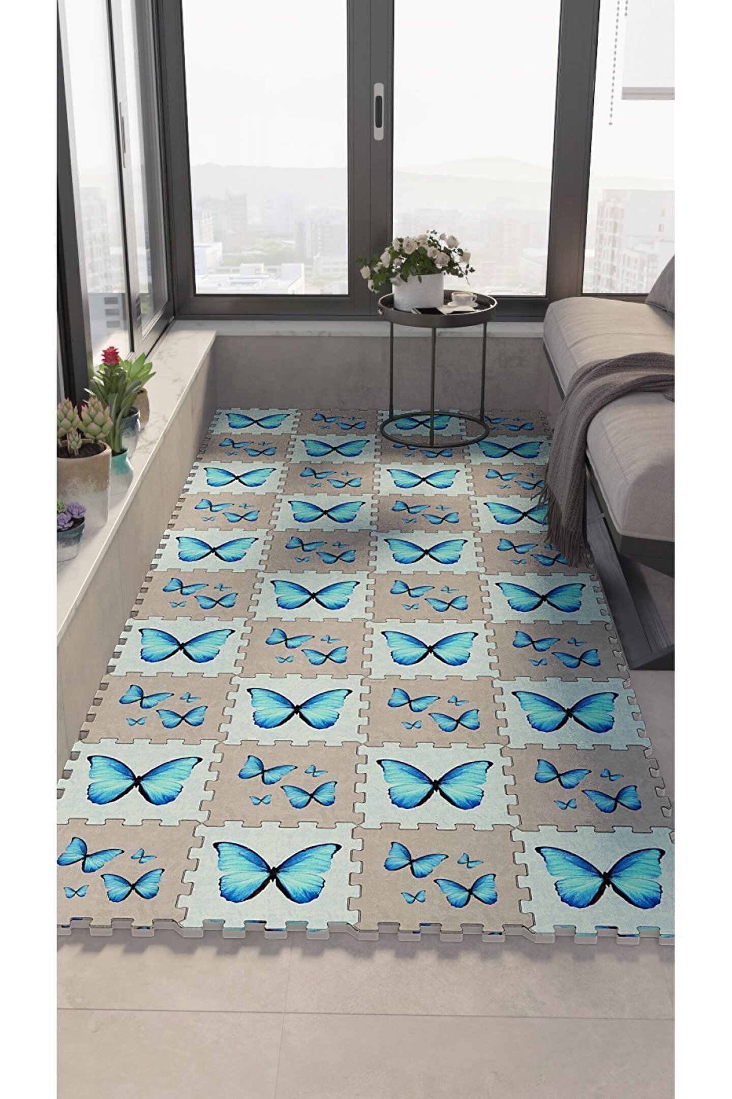 Tokyo Halı Kelebek Desenli Yumuşak Balkon Halısı Modelleri | Yapboz Halı | Puzzle Halı