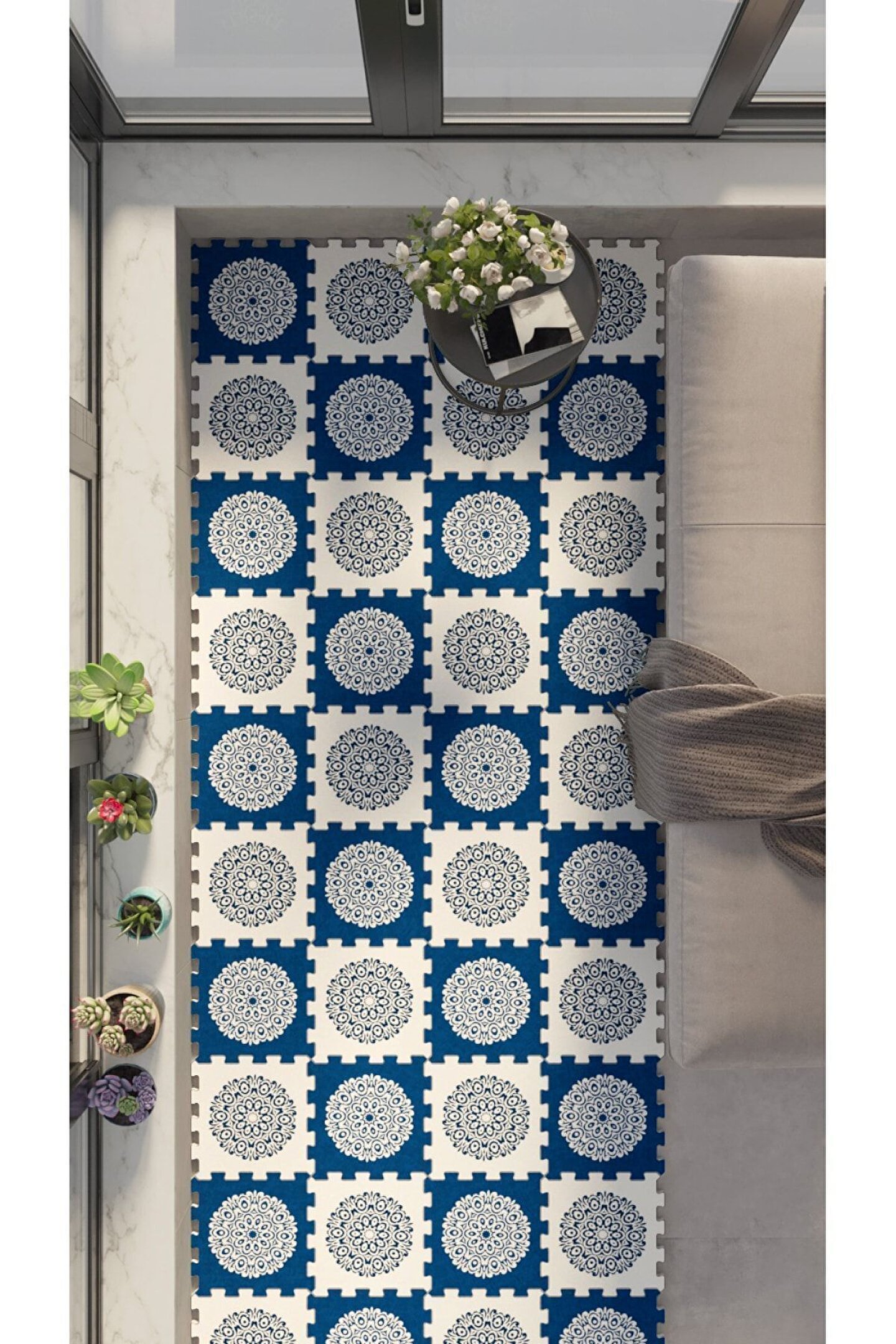 Tokyo Halı Mavi Beyaz Cam Balkon Yer Halısı Thb11 | Yapboz Halı | Puzzle Halı