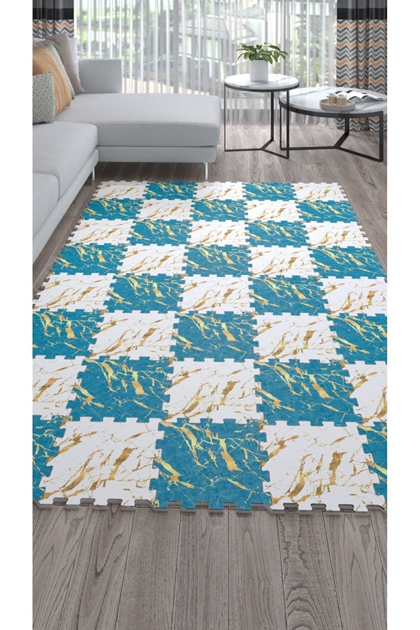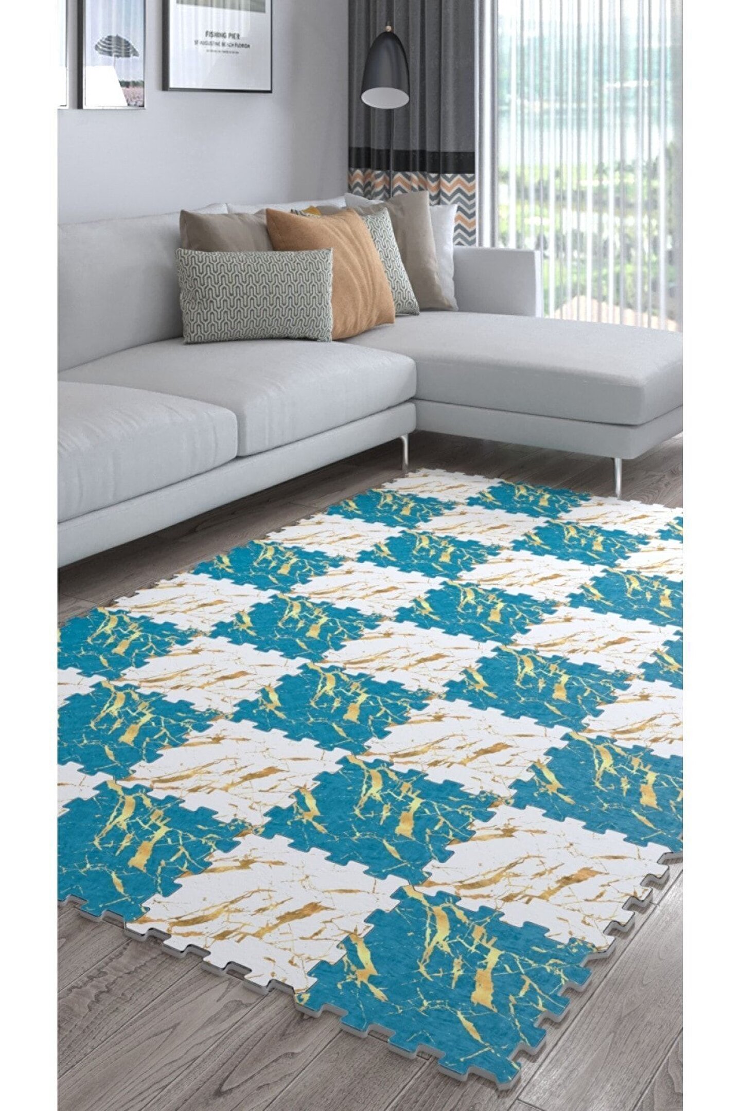 Tokyo Halı Mavi Beyaz Desenli Salon Halısı Ths27 | Yapboz Halı | Puzzle Halı