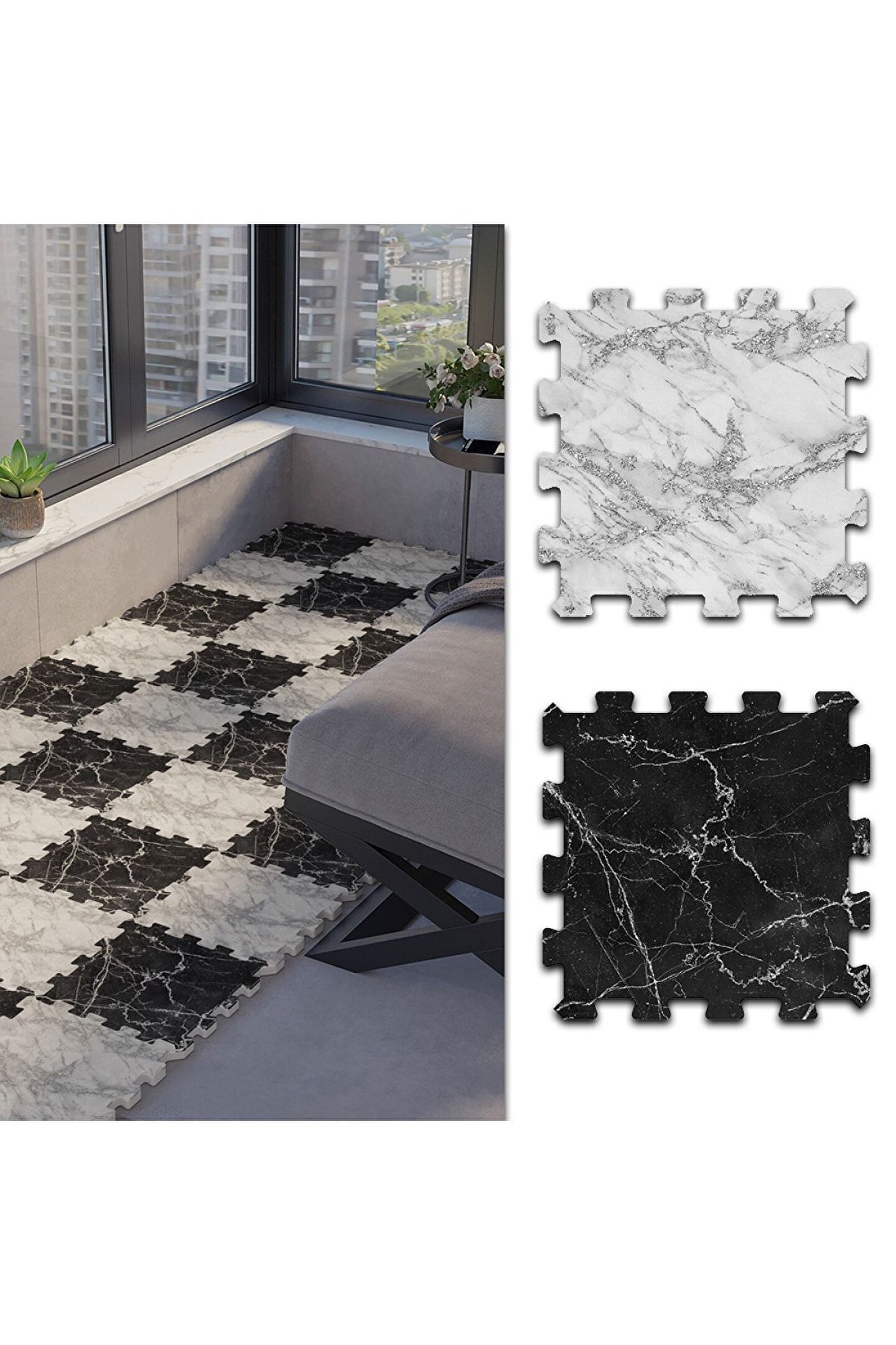 Mermer Desenli Su Geçirmez Balkon Halısı Thb22 | Yapboz Halı | Puzzle Halı