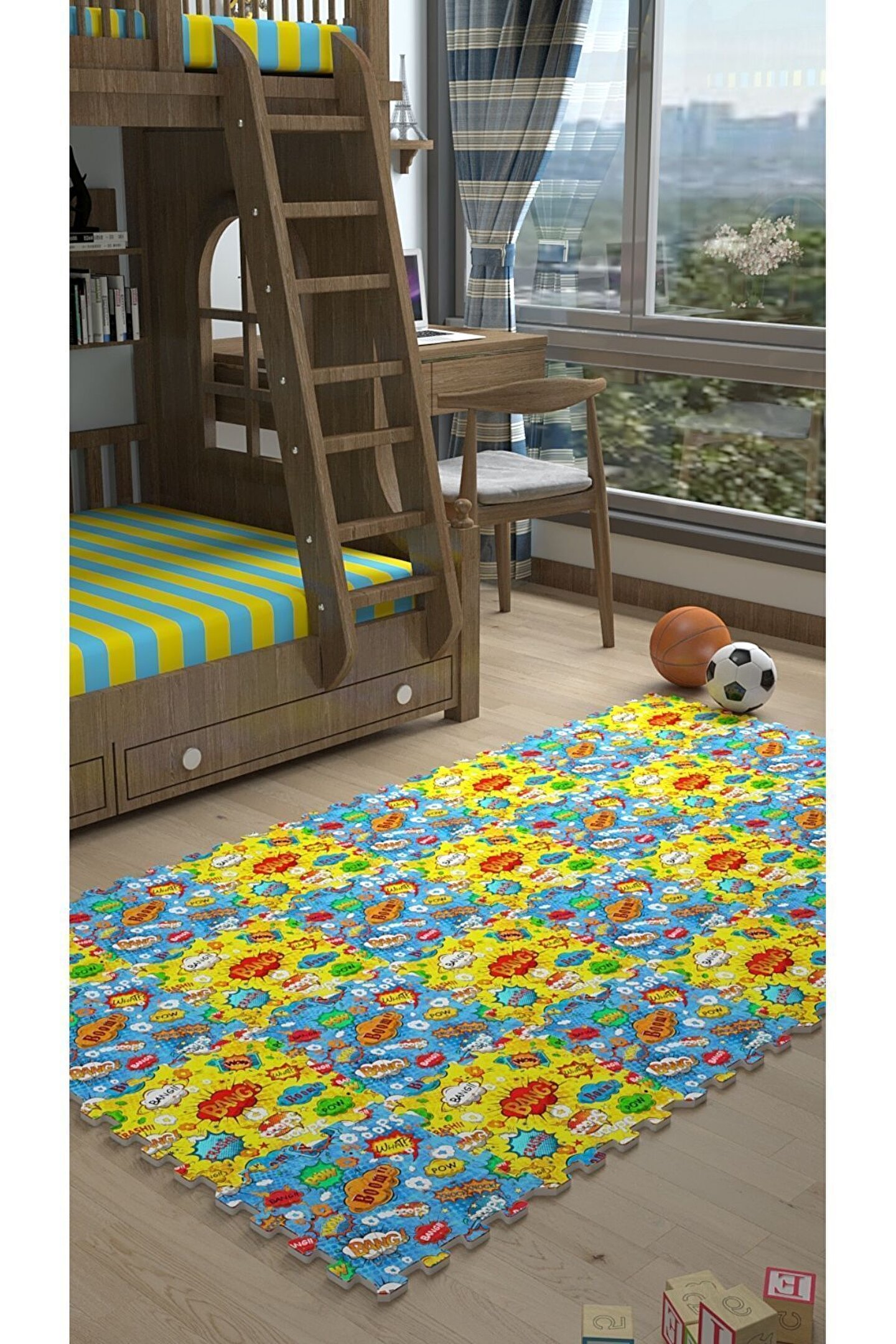 Tokyo Halı Renkli Yazılı Dekoratif Çocuk Odası Sı Thc16 | Yapboz Halı | Puzzle Halı