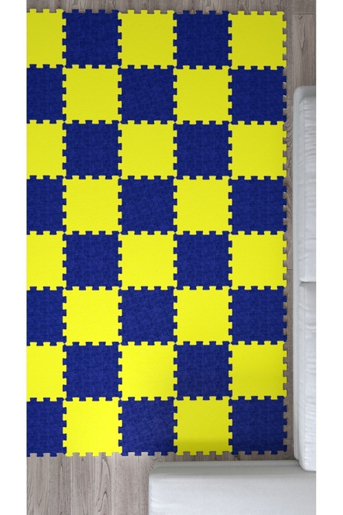 Tokyo Halı Sarı Lacivert Dekoratif Yıkanabilir Salon Halısı Ths31 | Yapboz Halı | Puzzle Halı
