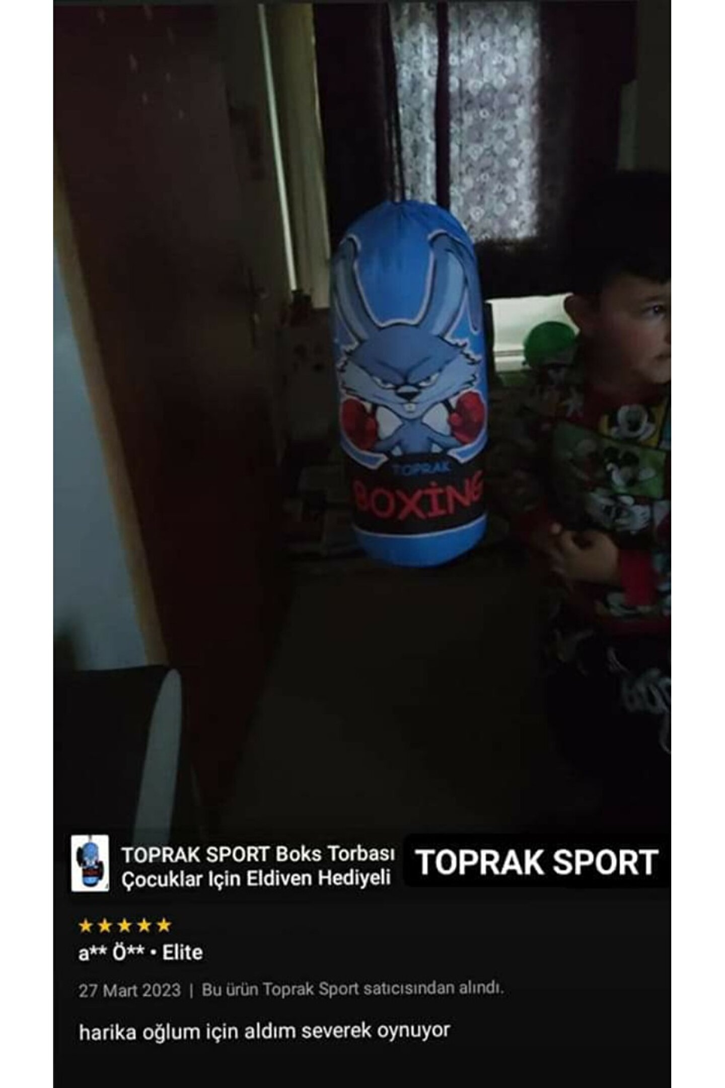 BOKS TORBASI ÇOCUKLAR İÇİN ELDİVEN HEDİYELİ İÇİ DOLU Çocukların çok seveceği, enerjilerini atabileceği, çocuk gelişimine faydası olan eğlenceli ve öğretici boks torbasının boyu 45 cm en 18 cm ölçülerinde 1.5- 2 kg civarında ağırlığındadır. ; Boks torbası dış yüzeyi darbelere karşı sağlam ve su geçirmeyen polyester kumaştan yapılmış olup, içi çocukların ellerine zarar vermeyecek ölçüde doldurulmuştur. ; Boks torbası eldivenleri sayesinde çocukların elleri zarar görmez. ; Boks torbası Onlar için ideal ağırlıkta ve sertliktedir Bir çift eldiven hediyelidir. ; Boks torbasının eldivenleri stok durumuna göre farklı renkte gönderilebilir. ; Boks torbası fotoğraflarda görsellerde ki gibi dolu bir şekilde, eldivenleri ile birlikte gönderilecektir.. ; ÖNEMLİ! Üzerinde TOPRAK Logosu bulunmayan ürün firmamıza ait değildir.;
