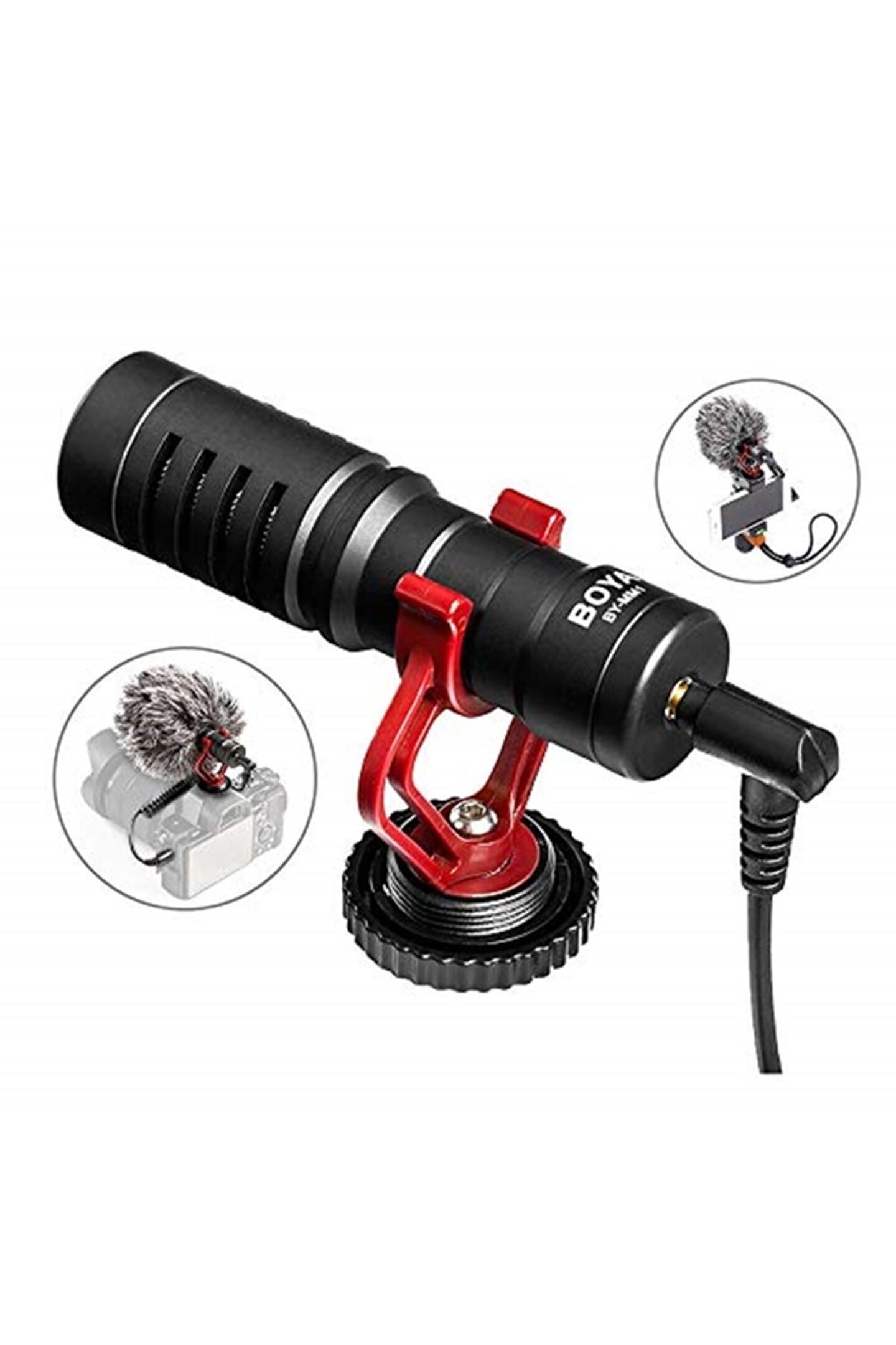 Boya BY-MM1 Condenser Mikrofon (Kamera Fotoğraf Makinesi Telefon Bilgisayar Ses Kayıt Cihazı Mikrofonu - Youtuber Vlogger Canlı Yayın Mikrofonu), birçok cihaz ile uyumludur ve video çekimlerinizde daha kaliteli ses almanızı sağlar. Alt kısmındaki bağlantı kızağı ve tripod yuvası sayesinde fotoğraf makinanızın flash kızağına veya 1/4" vidaya monte edebilirsiniz. Bağlantı kısmındaki esnek parça sayesinde titreşimlerden oluşabilecek gürültüyü emer. Standart 3.5mm stereo giriş ile cihazınıza bağlanır. Kompakt, hafif ve sağlam metal yapı, Düşük dip gürültüsü, Temiz ve net ses sağlayan mikrofon özelliklerine sahiptir. Dahili şok emici sarsıntıdan kaynaklanan gürültüleri engeller. Mikrofon tüyü rüzgar gürültüsünü büyük ölçüde engeller. Mikrofon tipi: Çok yönlü cardioid mikrofon. Frekans aralığı: 35-18KHz +/-3dB. Hassasiyet: -42dB +/- 1dB/ 0dB=1V/Pa, 1kHz. Sinyal gürültü oranı: 76dB. Sinyal kazancı anahtarı: 0dB, + 10dB. Filtre: Düşük frekans filtresi. Konnektör: 3.5mm stereo TRS ve TRRS konnektör. Ürün Boyutu: 22x81mm. Ürün Ağırlığı: 86g. Uyumluluk: Dslr fotoğraf makinesi, video kamera, bazı kompakt fotoğraf makineleri, bilgisayar, ses kayıt cihazı, akıllı telefon v.b birçok cihazda kullanılabilir. 3.5mm ses girişine sahip birçok cihazda çalışmaktadır. Giriş konnektörü uyumsuz ise çeşitli dönüştürücüler ile birlikte de kullanılabilir. Not: Kutu içeriğinde telefon ve diğer cihazlarda kullanılmak üzere 2 adet ara bağlantı kablosu mevcuttur. Paket İçeriği: Cardioid Mikrofon, rüzgar kesici tüy, taşıma kılıfı, 1 adet TRRS konnektör, 1 adet TRS konnektör, şok emici bağlantı aparatı, ingilizce kullanım kılavuzu. Setin İçeriği: Yaka mikrofonu; Mikrofon klipsi; Sünger; 6.3mm dönüştürücü; LR44 Pil; İngilizce kullanım kılavuzu