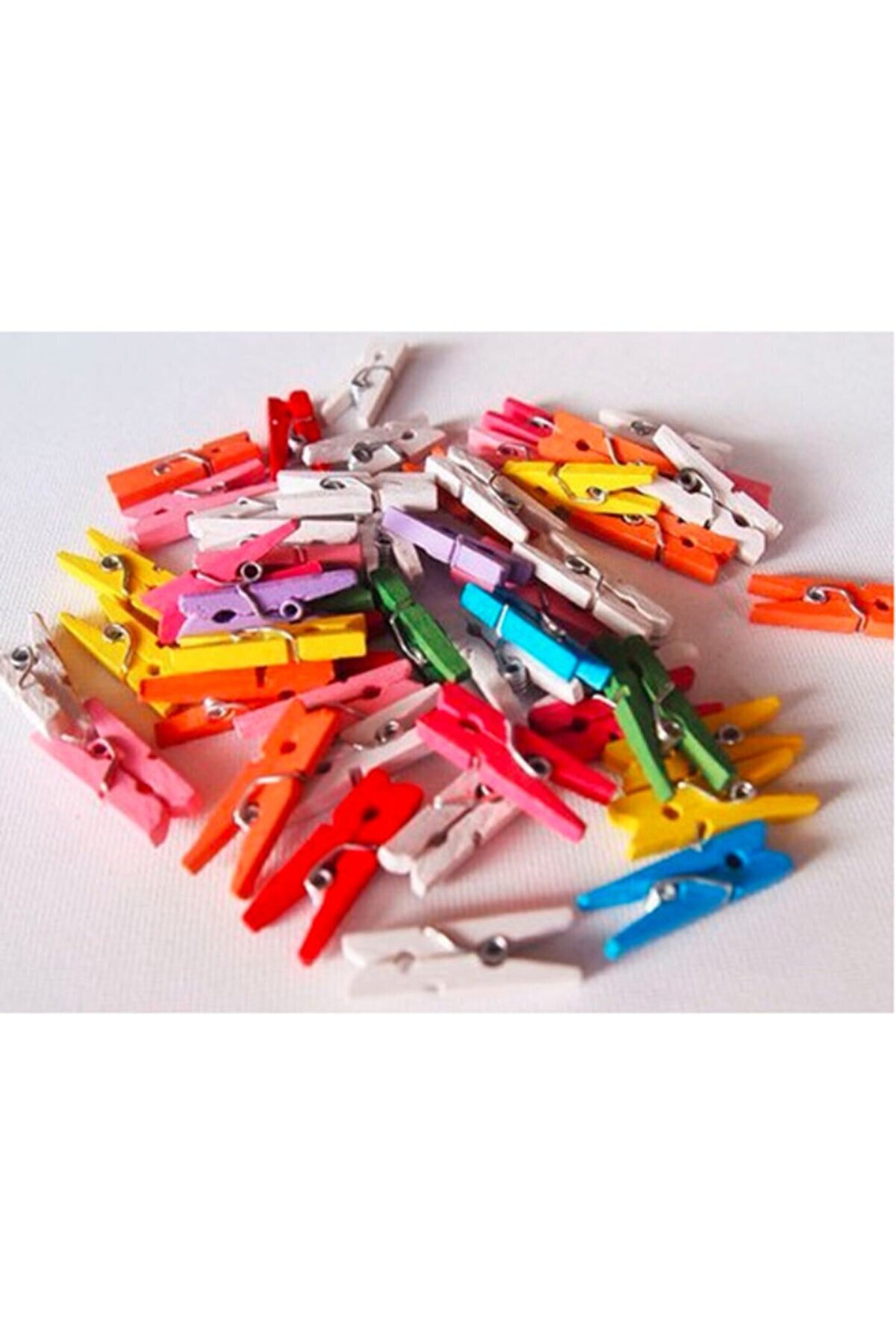 TOPTAN TÜRKİYE Renkli Ahşap Küçük Mandal 25li Mini Ahşap Mandal - Fotoğraf Mandalı