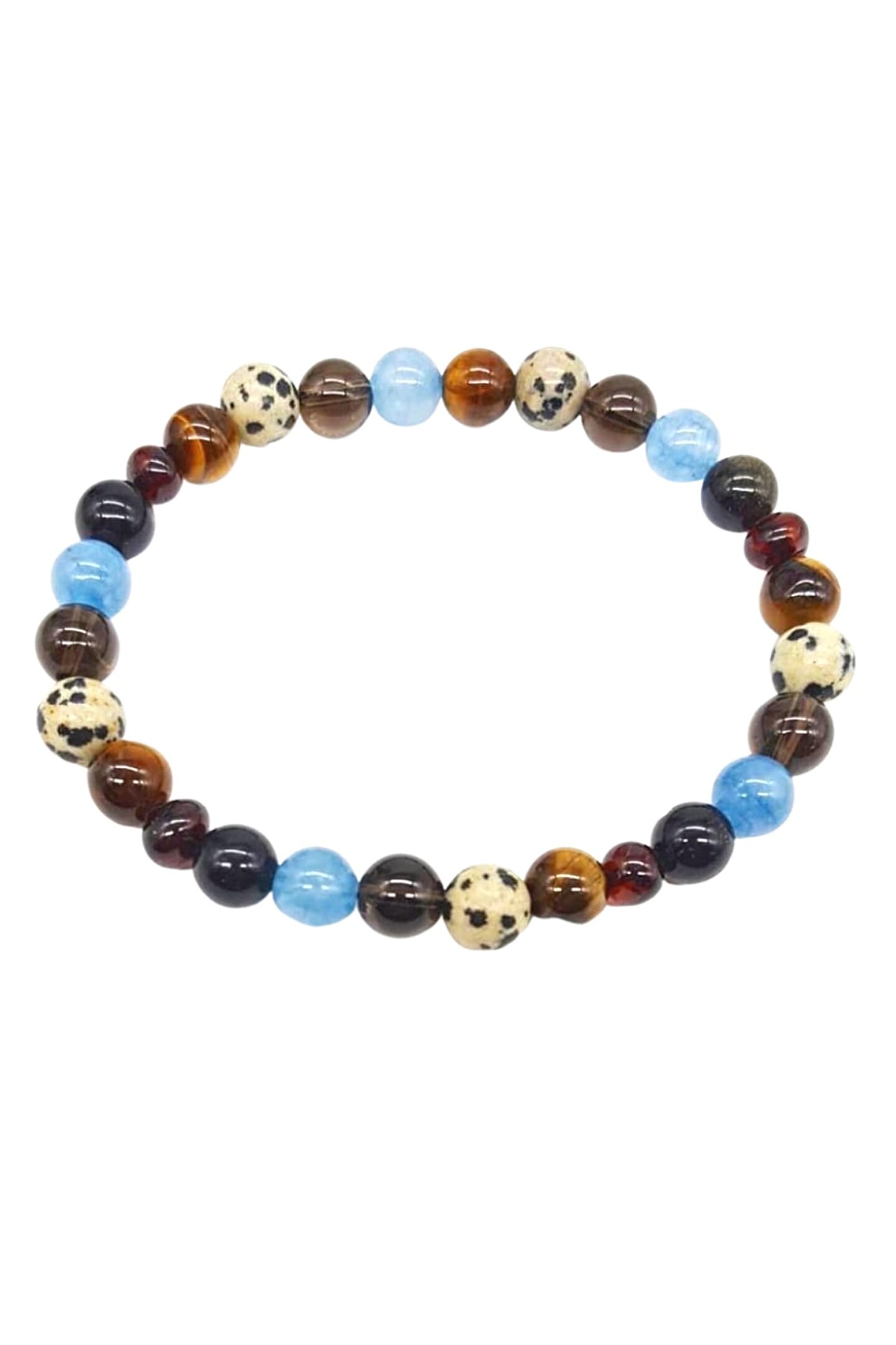 UYUM VE DENGE DOĞALTAŞ BİLEKLİK. ; KULLANILAN DOĞALTAŞLAR TAŞLAR: KAPLANGÖZÜ, JASPER, DUMANLI KUVARS. AQUAMARİN, OBSİDYEN VE KEHRİBAR. ; BİLEKLİK, MİSİNA LASTİKLİ DİZİLMİŞTİR. ; BİLEKLİĞİN ÖZELLİKLERİ: EŞ VE AİLE İÇİ UYUM, SEVGİ GELİŞİMİ, EMPATİ, ÖFKE VE STRES KONTROLÜ, BAĞIMLILIK AZALTMA,PANİK ATAK, ÖZGÜVEN, KORKULAR İLE BAŞ ETME, UYKUSUZLUK VE SOLUNUM RAHATLIĞI. ; KULLANIM ŞEKLİ: İÇME SUYU OLAN BİR KAPTA VEYA KURU TOPRAKTA 1 SAAT BEKLETİLİR. KURULANIP KULLANILIR. TEMİZLEME İŞLEMİ 15 GÜNDE BİR TEKRARLANIR. ;