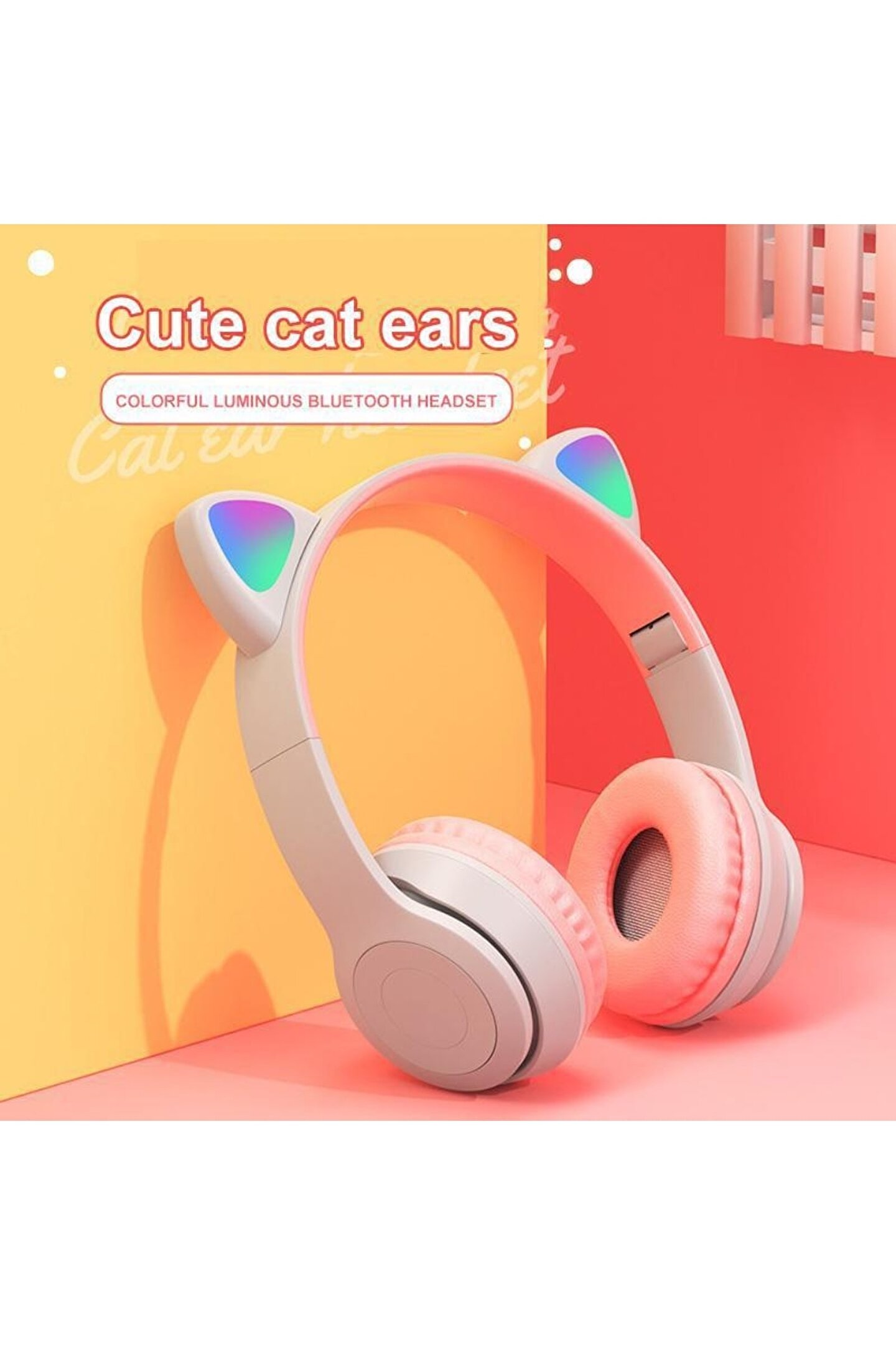 Torima P47m Gri Sevimli Renkli Kedi Kulak Bluetooth Kulaklık