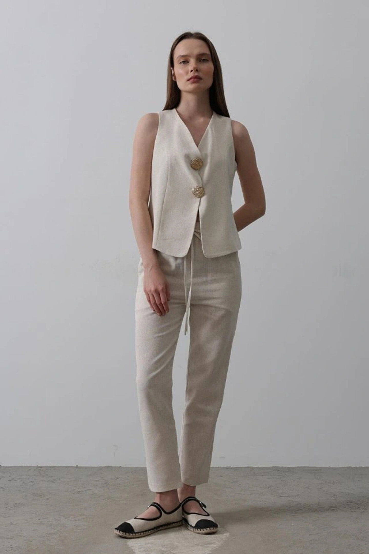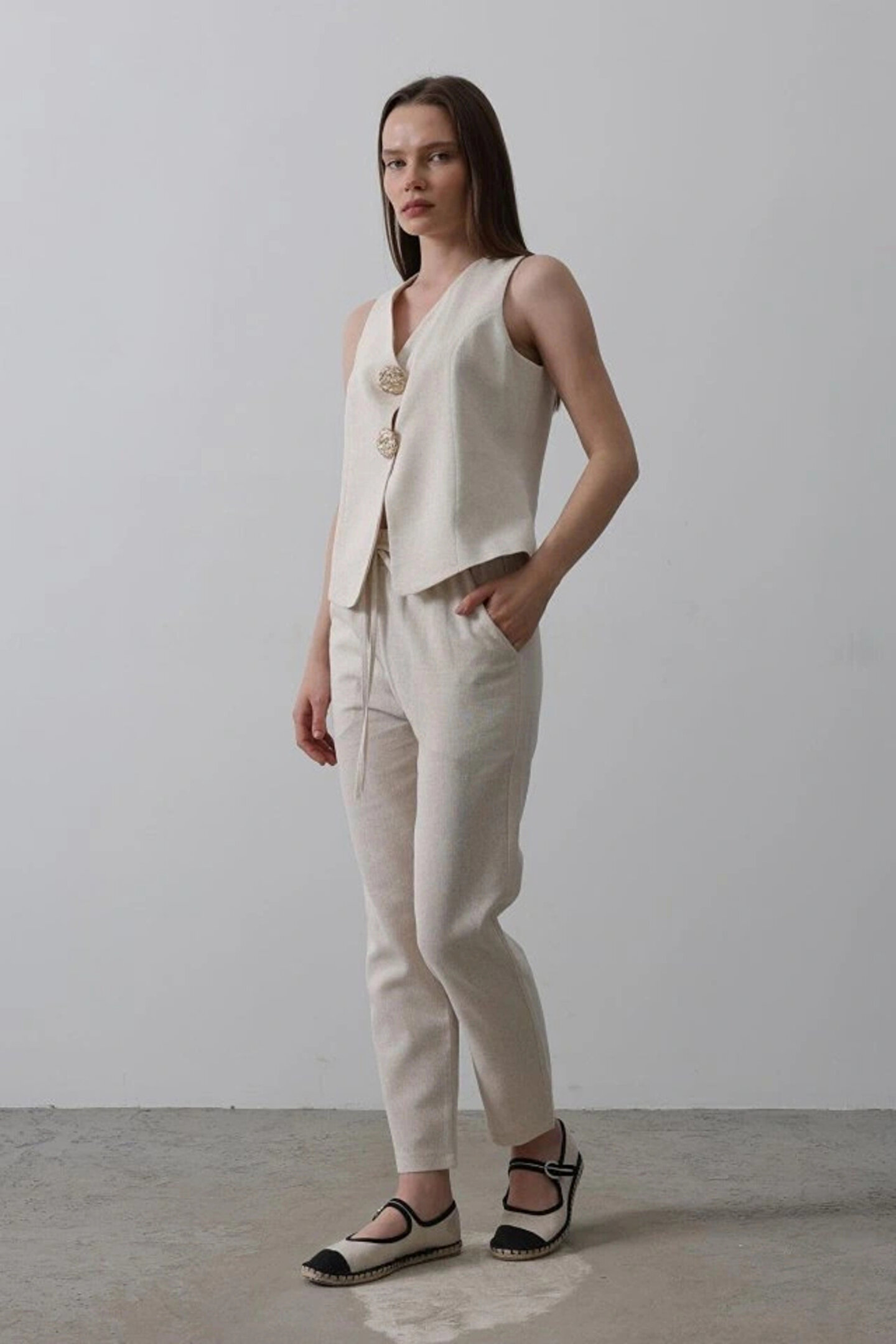 Düğme Detaylı Yelek - Krem