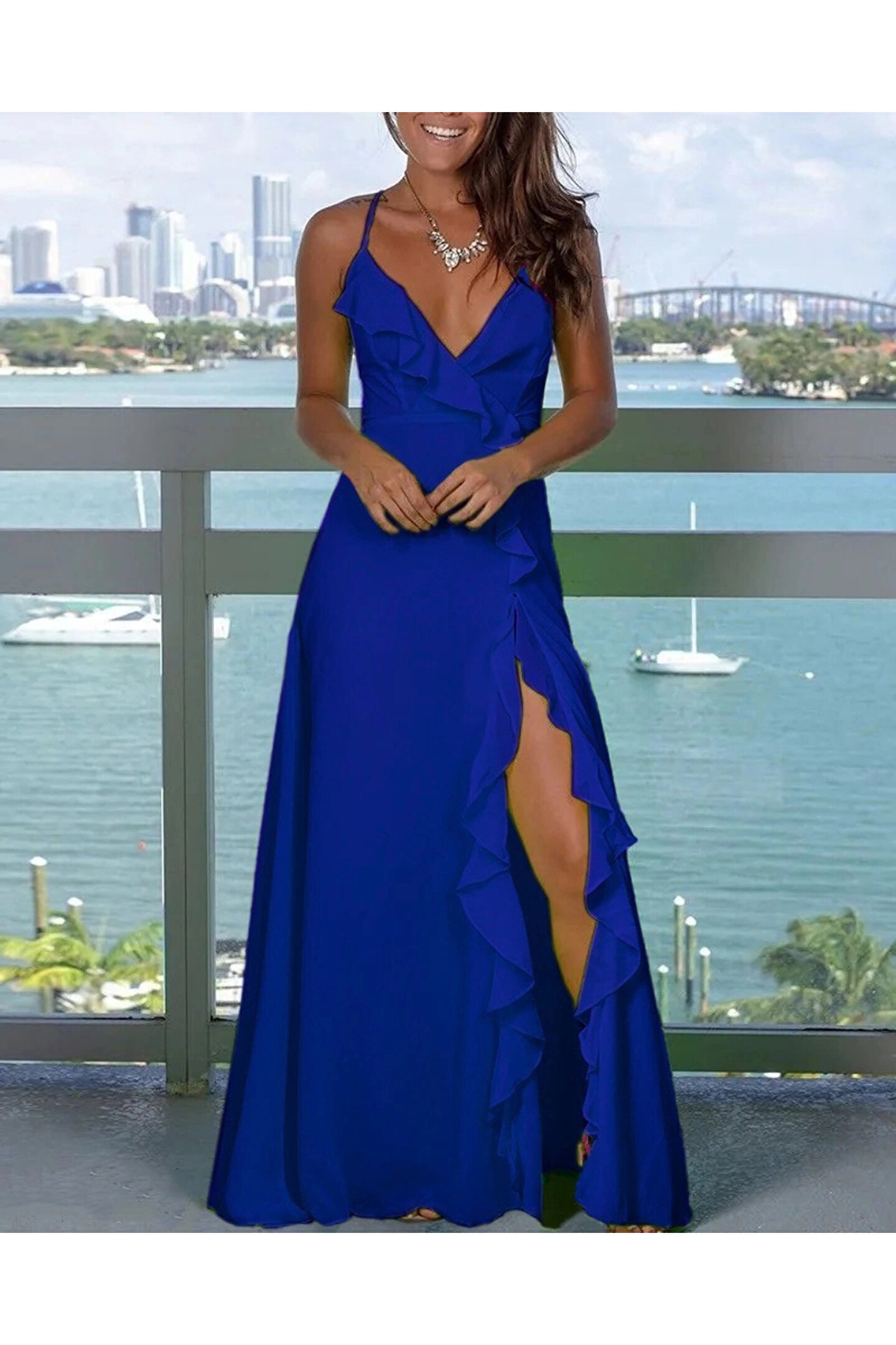 Kadın Ip Askılı Dekolteli Yırtmaç Detay Krep Elbise