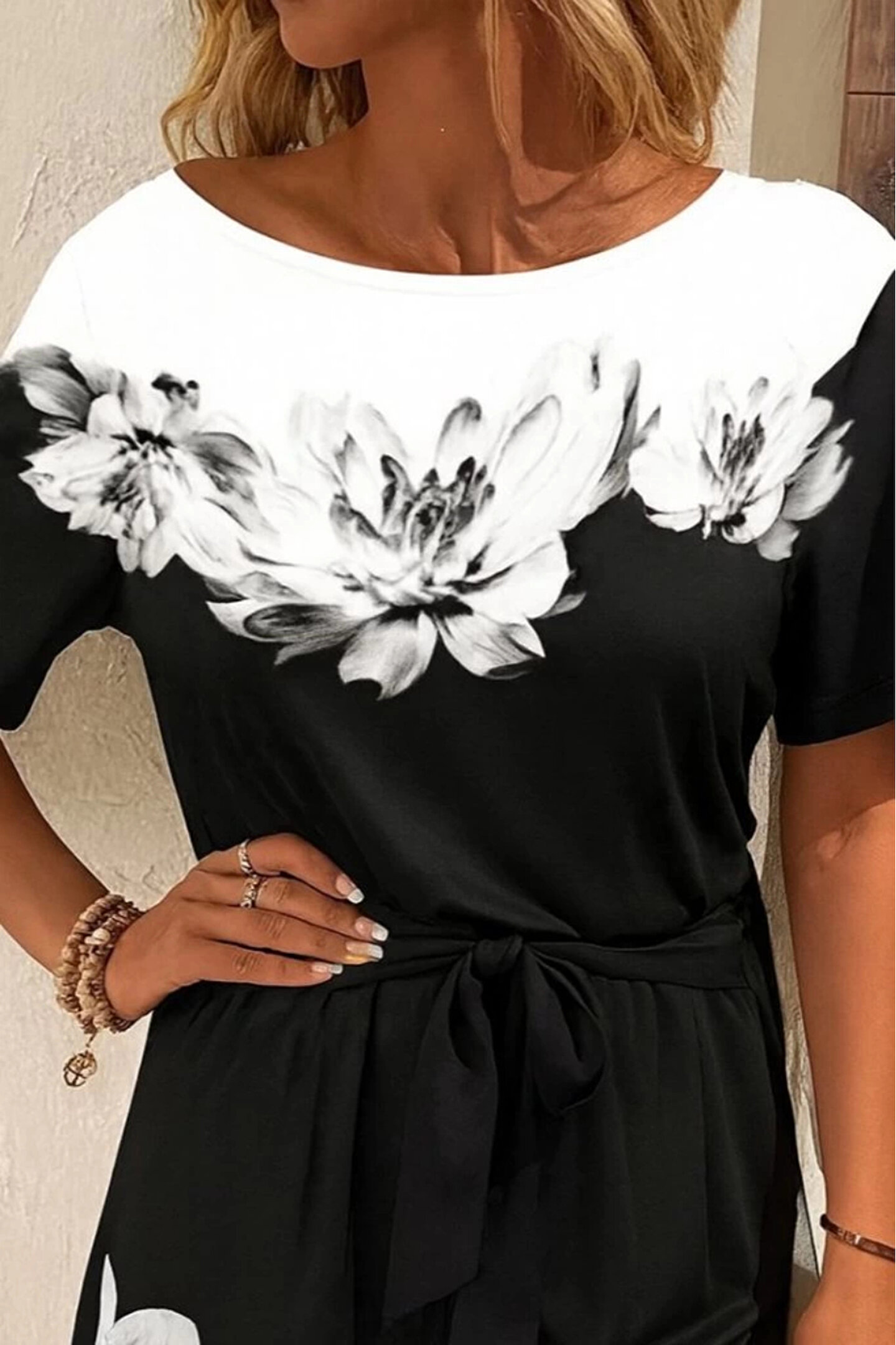 trend_ermege Kadın Tek Omuzu Açık çiçek Desenli Beli Kuşaklı Iki Iplik Mini Short Tulum
