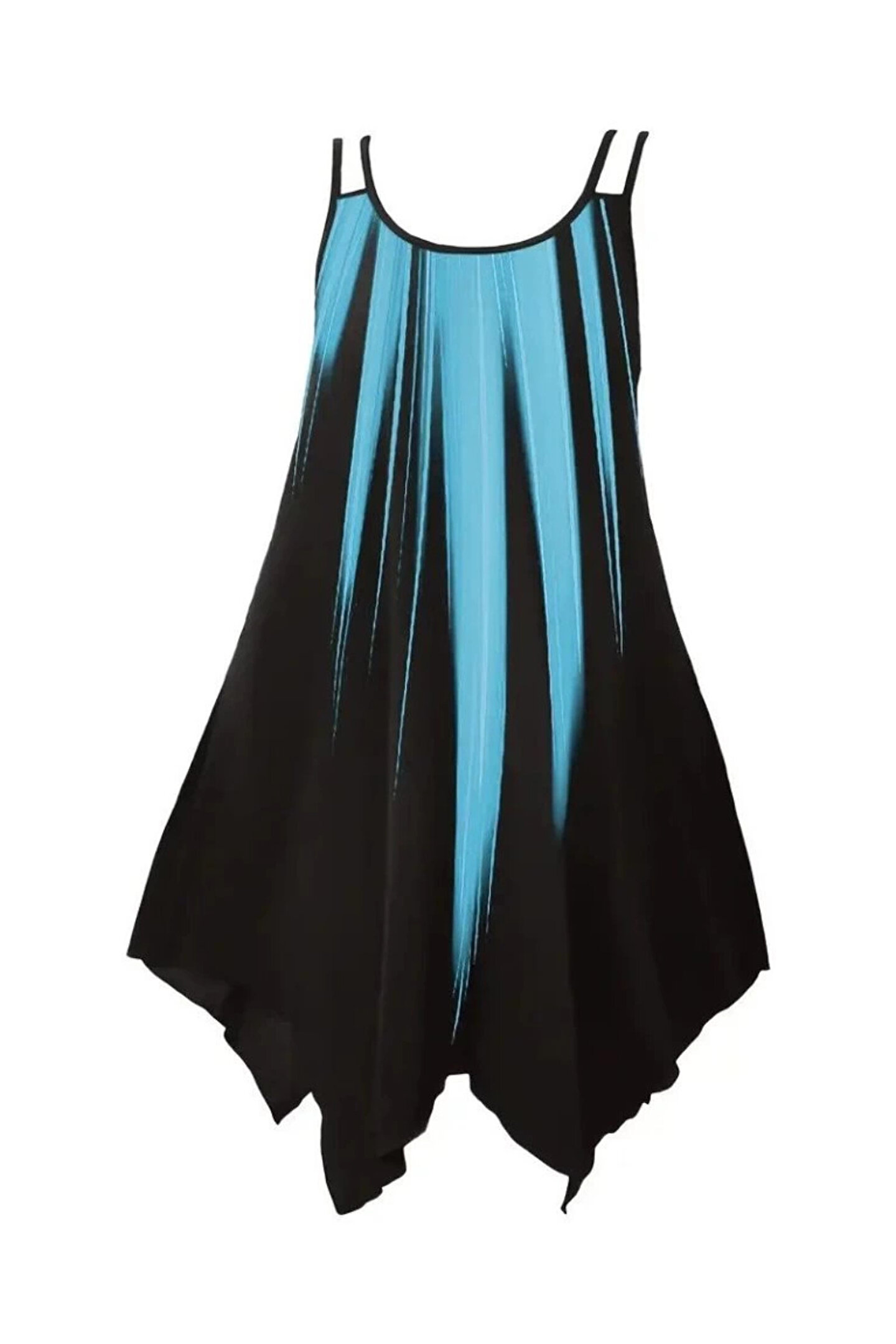 Kadın Askılı Yuvarlak Yaka Asimetrik Detaylı Desenli Süprem Elbise