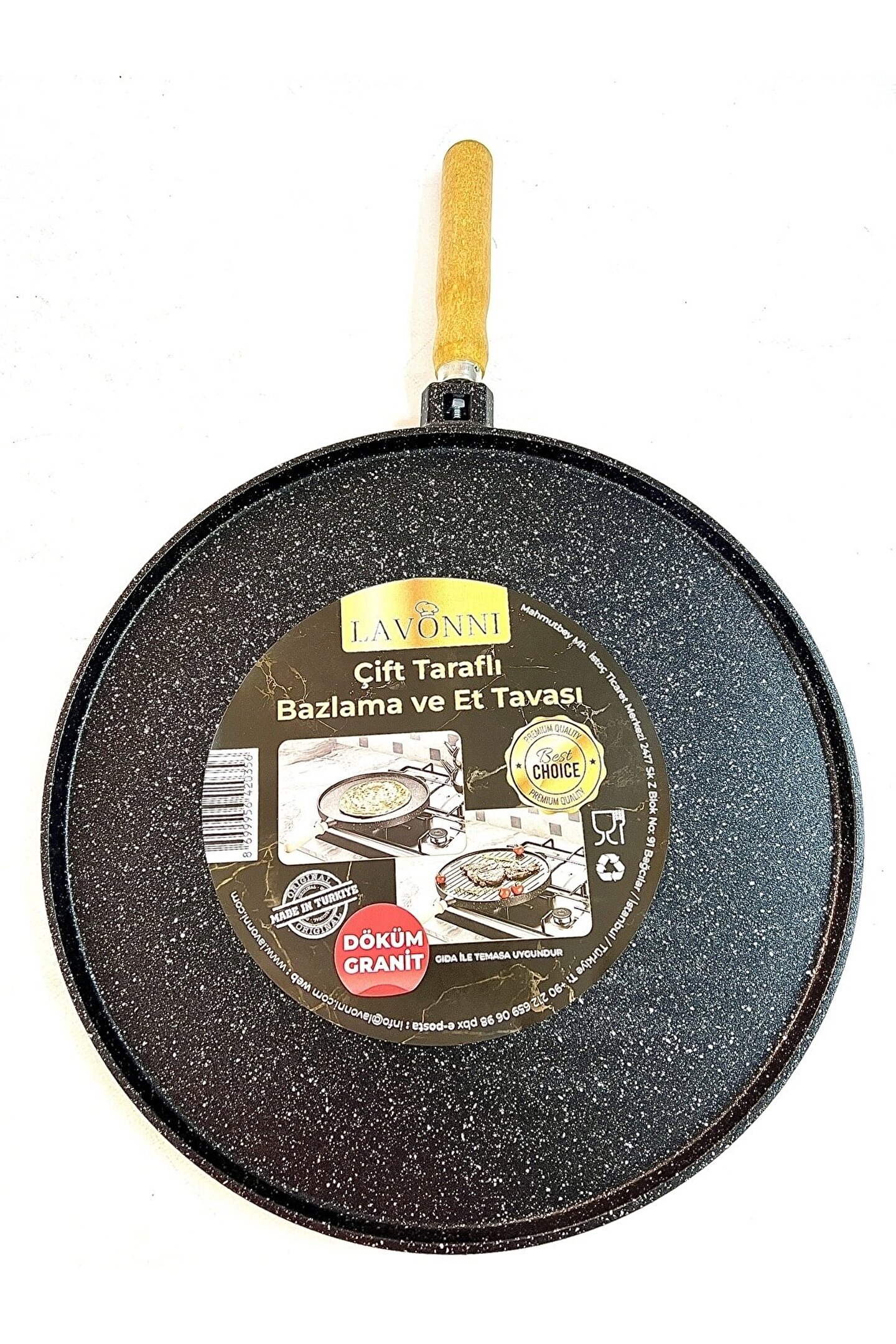 Siyah renk seçeneğiyle şık ve modern bir görünüm sunar; Tek parça halinde kolay kullanım sağlar; ekstra parçalarla uğraşmanıza gerek kalmaz; Çıkarılabilir sap özelliği sayesinde temizliği pratik ve zahmetsizdir; Gözleme yaparken ideal pişirme yüzeyi sunan çift taraflı tasarımı ile mutfakta vazgeçilmez bir yardımcıdır; Döküm iç materyali sayesinde uzun ömürlü kullanım ve eşit ısı dağılımı sağlar; Granit dış yüzeyi ile dayanıklılık ve estetiği bir arada sunar, mutfak tezgahınıza şıklık katar;