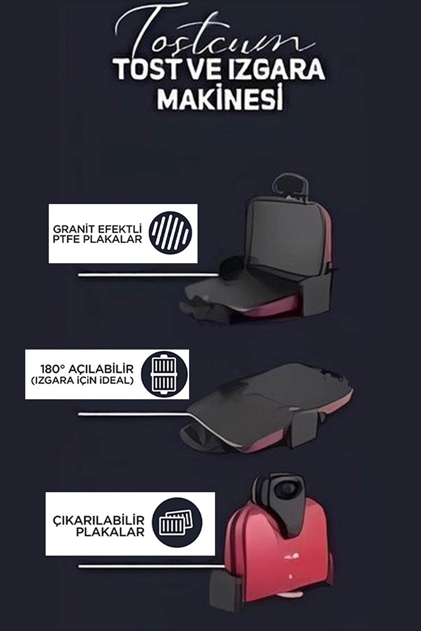 Troya TR-527 Çıkarılabilir Plakalı 1800 W Tost & Izgara Makinesi