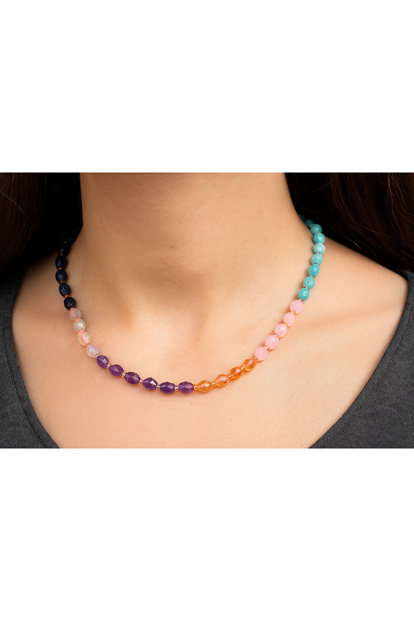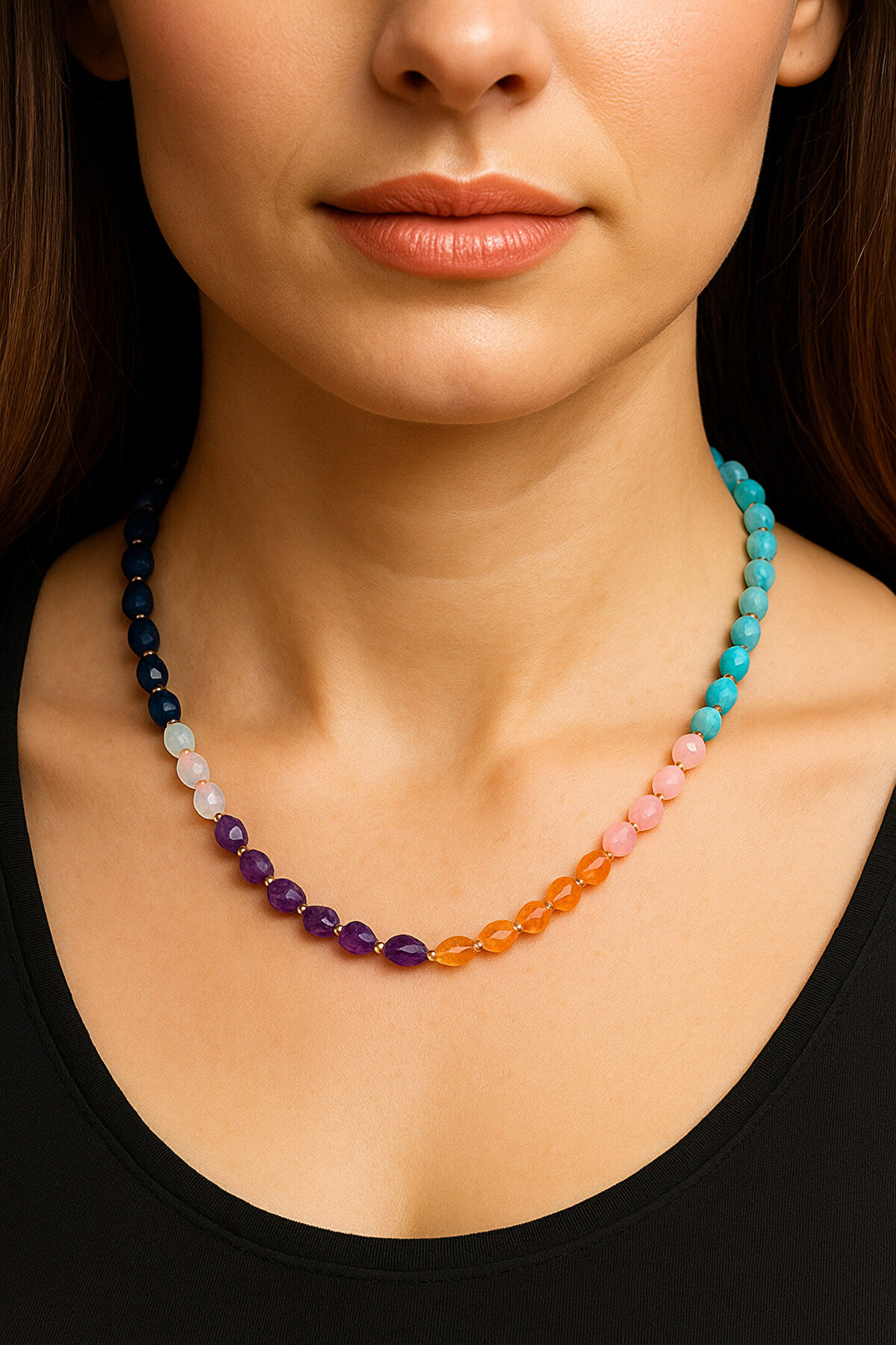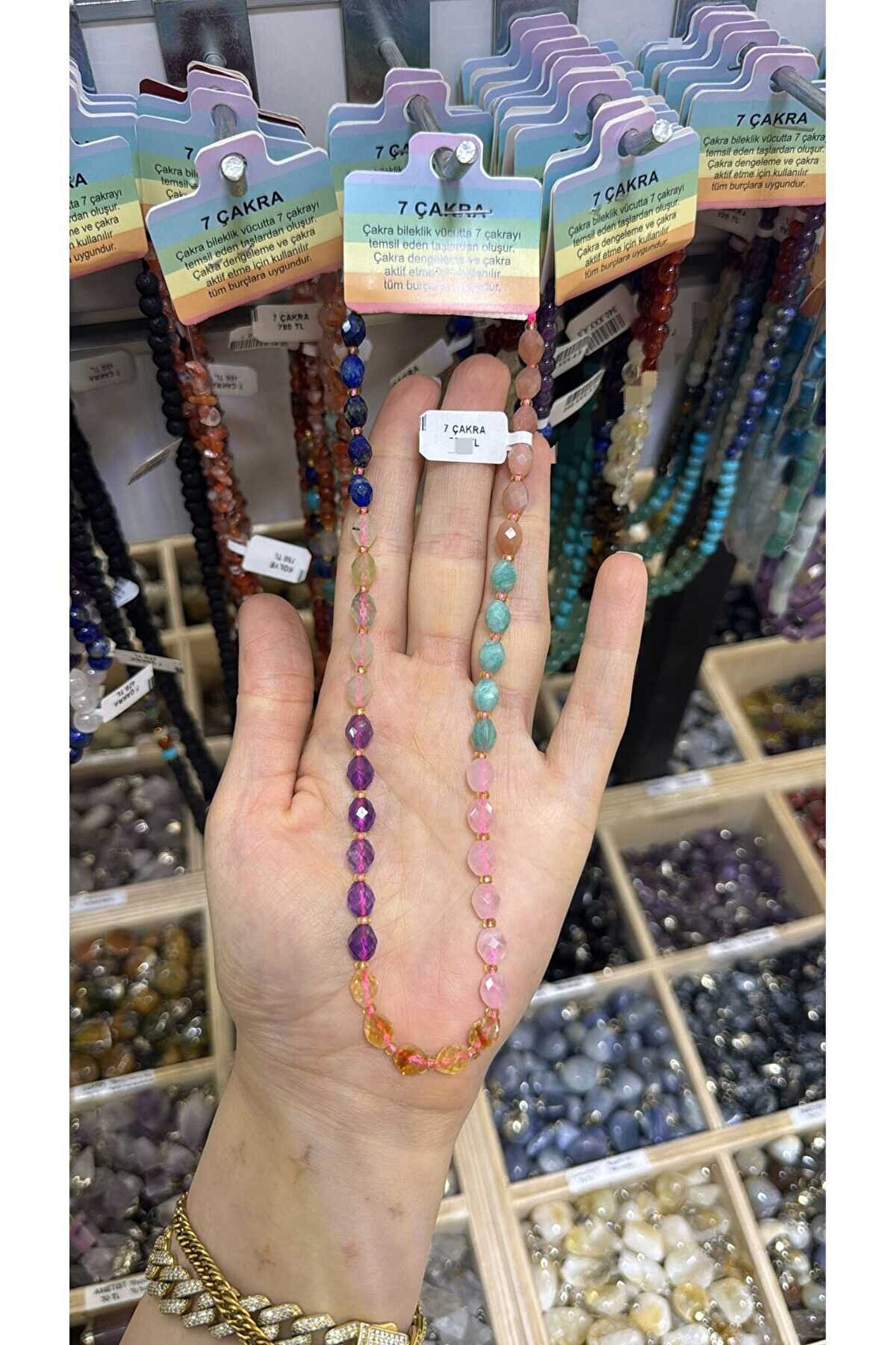 * Enerji Dengesi: Vücudunuzdaki yedi ana çakrayı dengelemeye yardımcı olan özel tasarım bir kolyedir.; * Doğal Taşların Gücü: Her bir çakra, o çakranın enerjisini yansıtan ve destekleyen doğal taşlarla temsil edilir.; (Örnek: Kök çakra için Kırmızı Akik, kalp çakrası için Yeşil Aventurin vb.; ) * Tasarım ve Malzeme: Genellikle ayarlanabilir bir zincir veya ip üzerinde dizilmiş, yüksek kaliteli doğal taşlardan oluşur.; Her taş özenle seçilmiştir.; * Spiritüel Anlam: Meditasyon ve farkındalık pratiklerinizi destekler, pozitif enerjiyi çekmeye ve negatif enerjiyi uzaklaştırmaya yardımcı olur.; * Anlamlı Hediye: Yoga yapanlar, spiritüel arayış içinde olanlar veya sadece doğal taşların güzelliğini takdir edenler için mükemmel ve anlamlı bir hediye seçeneğidir.; * Kullanım: Günlük kullanım için uygundur.; Hem spor hem de şık kombinlerinizle rahatça uyum sağlar.; * Boyut ve Ağırlık: Hafif yapısı sayesinde gün boyu konforlu bir kullanım sunar.