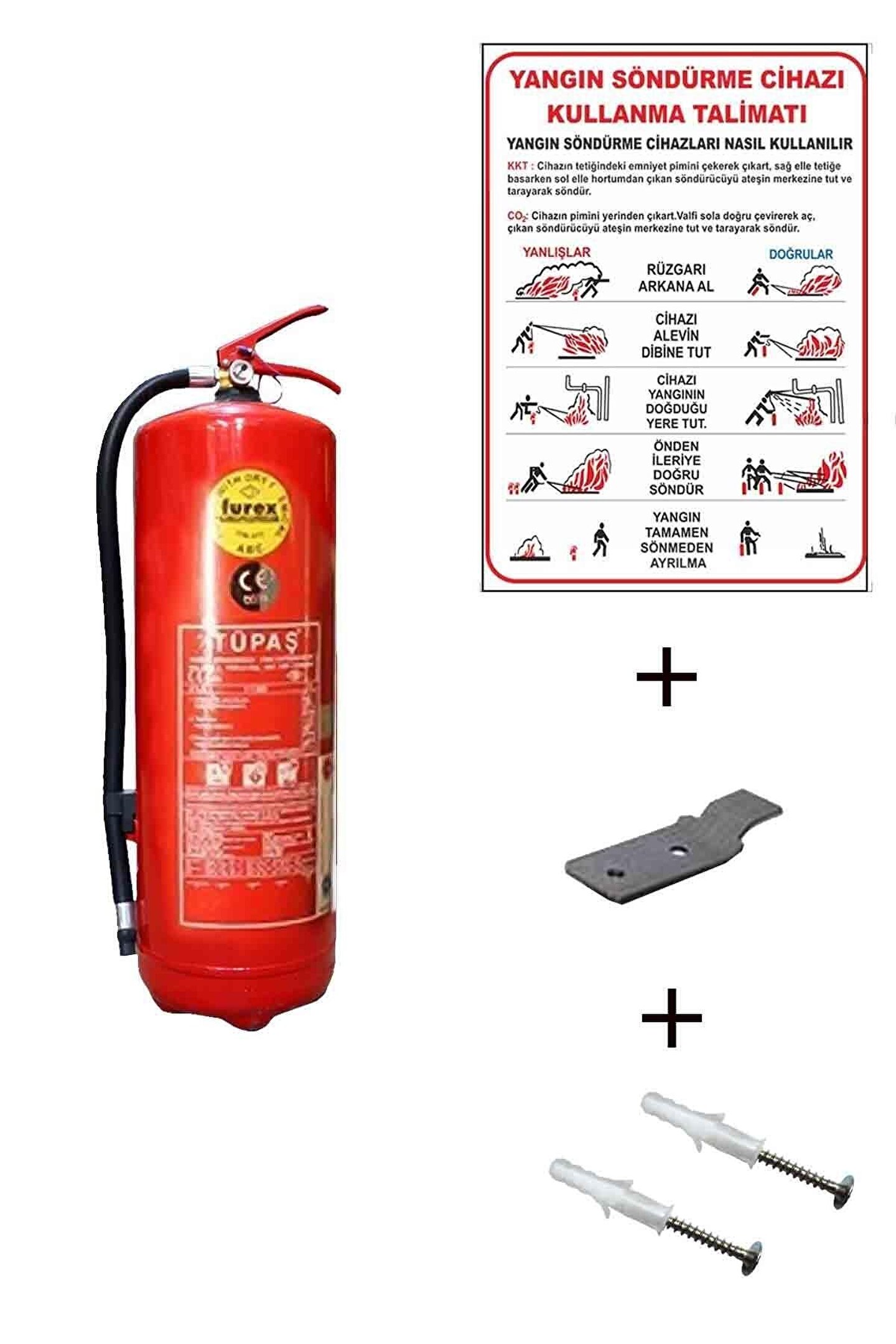 6KG TÜPAŞ YANGIN TÜPÜ, ASKI APARATI,YANGIN TÜPÜ KULLANIM TALİMATI VE DÜBEL VİDA 4LÜ SET
